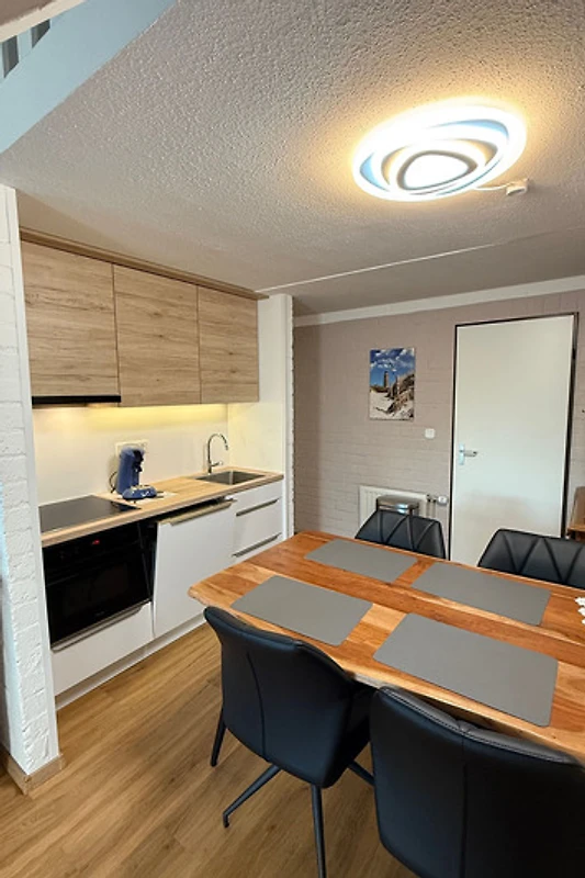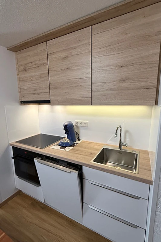 Die Küche ist komplett ausgestattet inkl. Herd, Backofen, Microwelle, Kühlschrank mit Gefrierfach. Im Wohnzimmer steht ein Kamin zur Verfügung. Das Bad wurde 2023 kernsaniert.