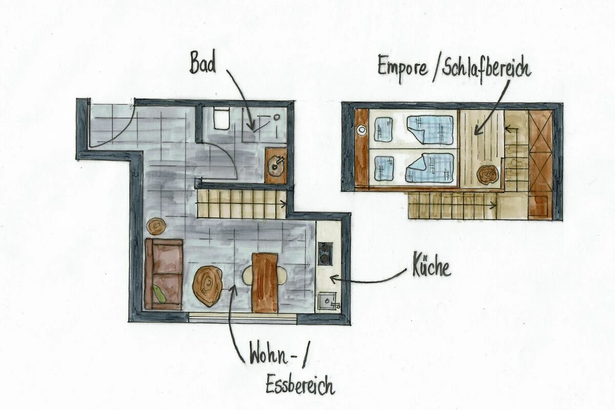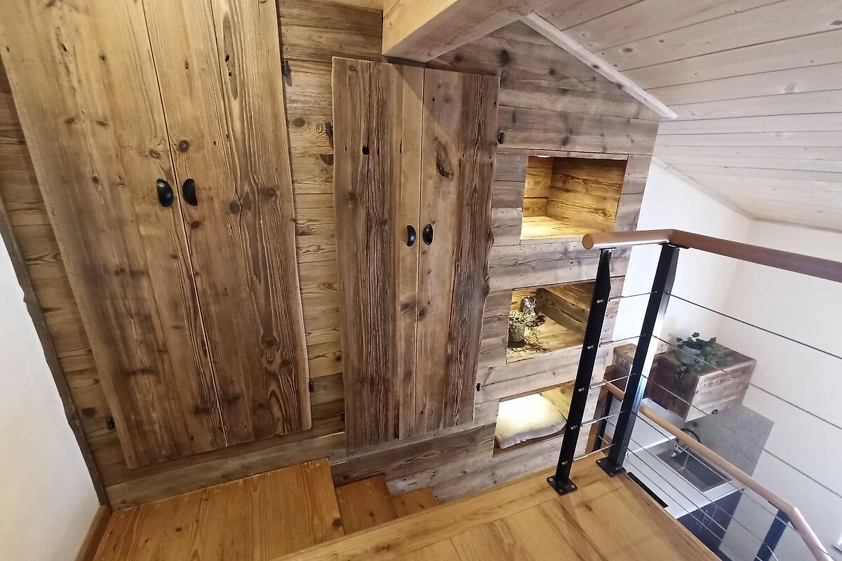 2015 haben sich Familie Jung und Familie Brockstedt ihren Traum vom Haus in den Bergen erfüllt und in den letzten Jahren drei charmante Ferienwohnungen im ehemaligen Scheunenteil des Bauernhauses ausgebaut. Die Anfang 2023 fertig gestellten Unterkünfte wurden mit viel Liebe zum Detail in einem rustikal-modernen Stil mit viel Altholz eingerichtet. Der Innenarchitektin Camilla Brockstedt war es wichtig kleine Wohlfühloasen als Rückzugsort für ihre Gäste zu gestalten.