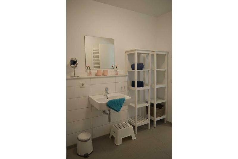Nach dem Aufstehen können Sie sich dann im modernen Badezimmer für Ihre Ausflüge über die Insel bereit machen oder sich nach Ihrer Zeit am Strand das Salzwasser unter dem warmen Wasser der ebenerdigen Dusche vom Körper waschen.