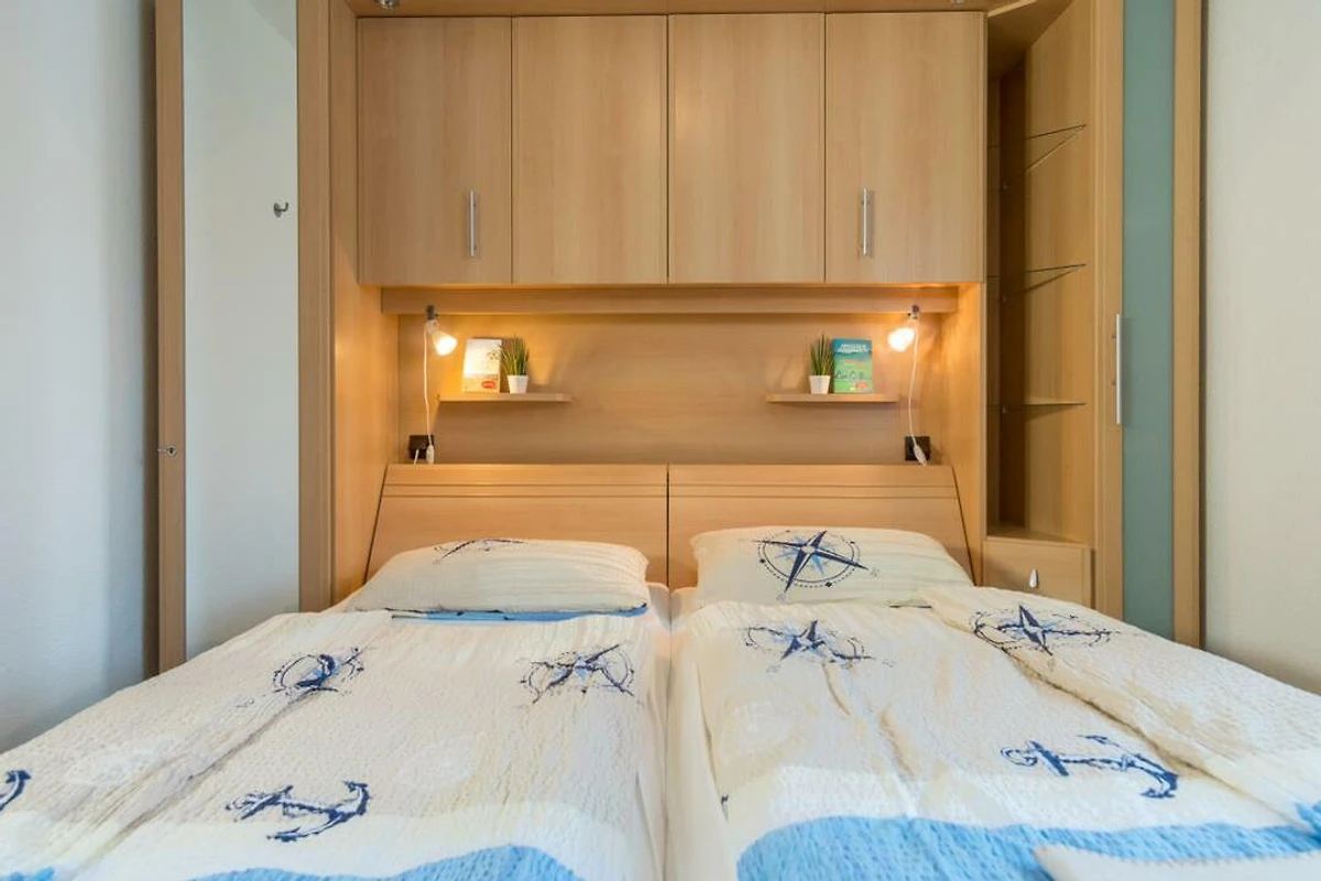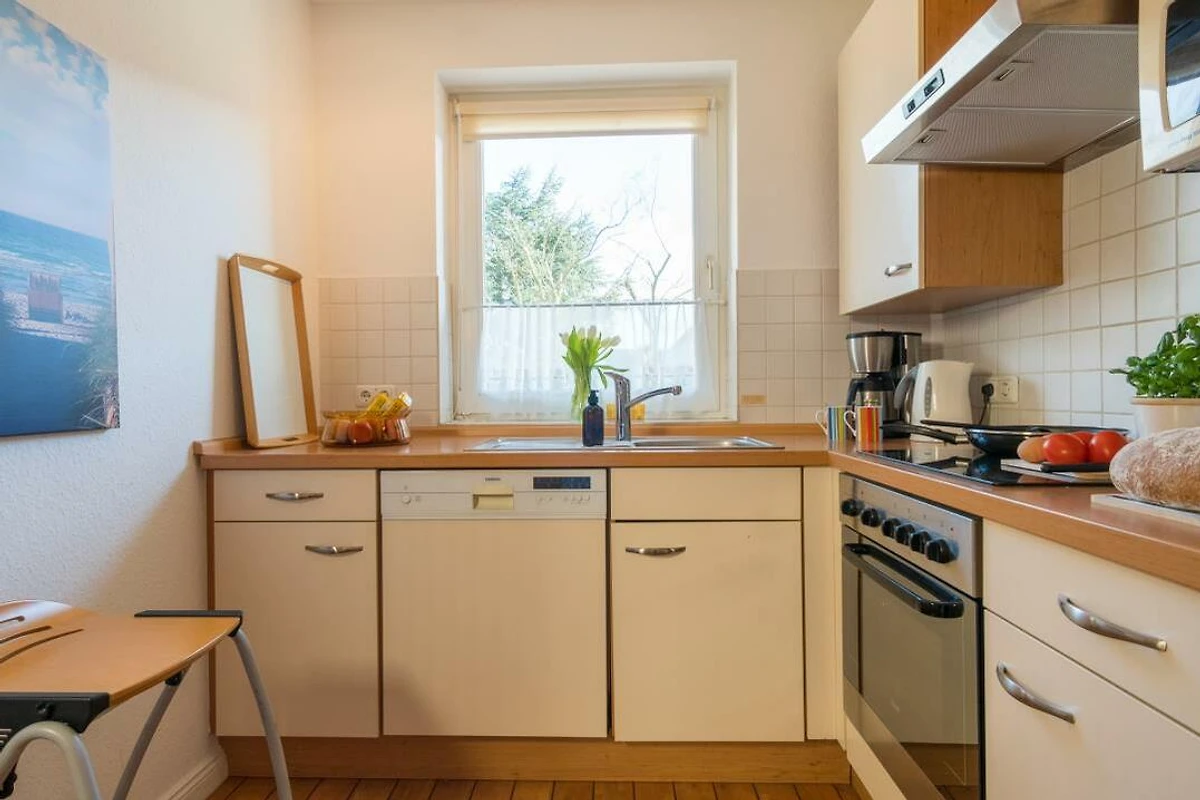 Die Wohnung liegt im Gewerbegebiet in unmittelbarer Nähe zum Meereszentrum, ALDI und weiteren Einkaufsmöglichkeiten. Die Innenstadt ist gut zu Fuss oder per Fahrrad zu erreichen. Zum Südstrand benötigt man mit dem Fahrrad etwa 15-20 Minuten, mit dem Auto ca. 5 Minuten.