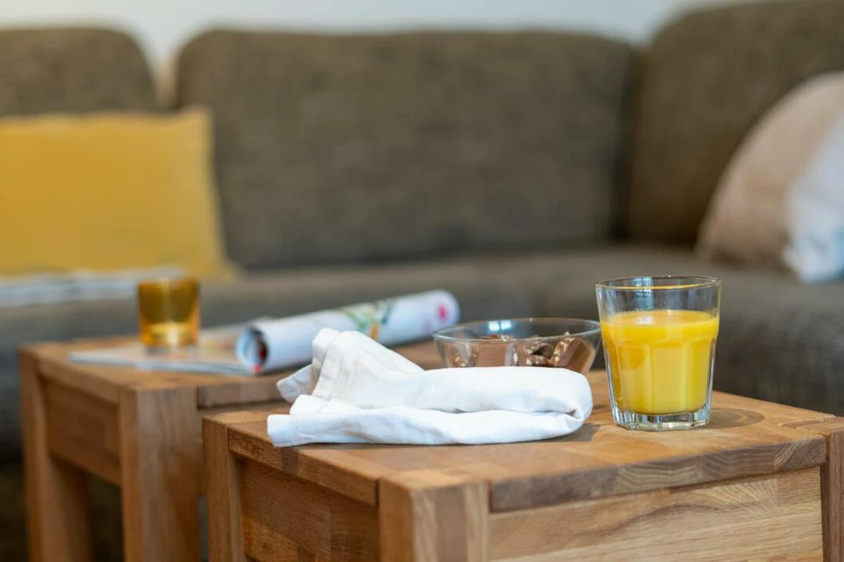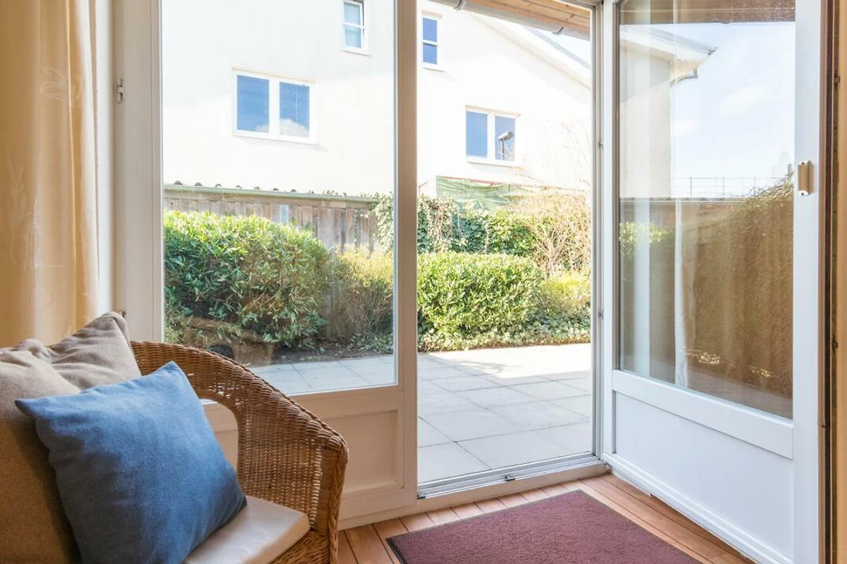Laufen Sie direkt in das geräumige Wohnzimmer, können Sie auch gleich auf die Terrasse in den kleinen Garten schauen, der Ihnen dort zur Verfügung steht, bevor Sie es sich auf der gemütlichen Couch bequem machen, um nach Ihrer Anreise durchzuatmen und anzukommen.