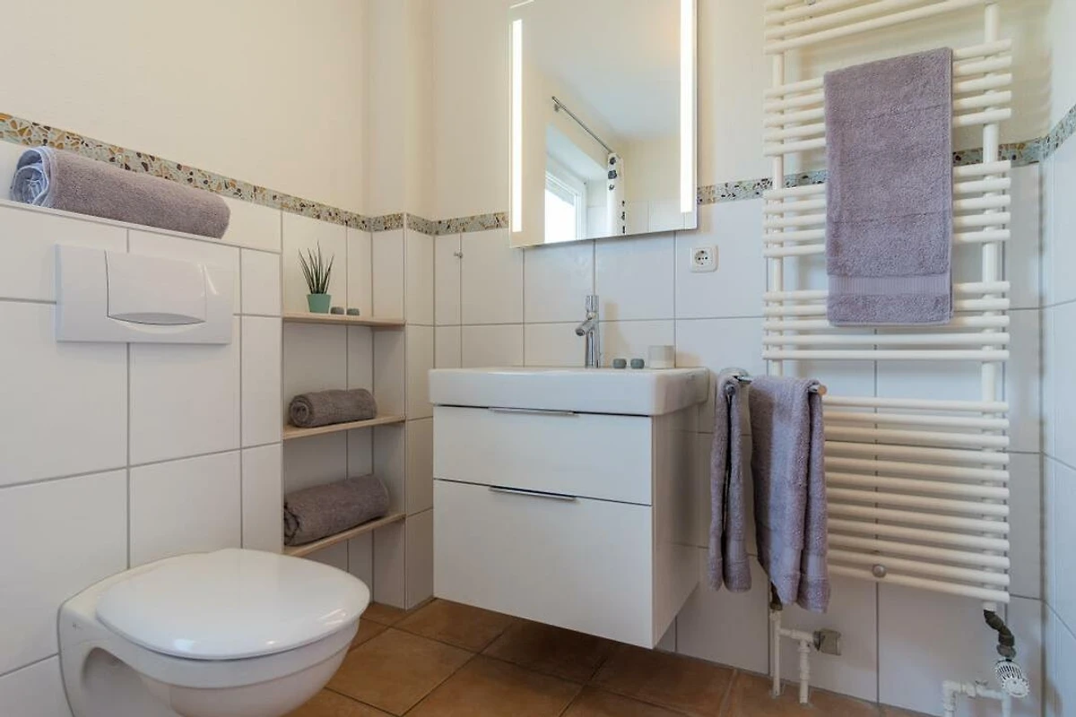 Die Unterkunft war sehr schön. Gute Ausstattung, besonders zu loben, die schönen Weingläser ! Es fehlte an nichts ! Das einzige was ich vermisst habe ....eine Überdachung an der Terrasse , jammern auf hohem Niveau !!! Wir haben uns sehr wohl gefühlt, mitten in Burg und totale Ruhe ! Liebe Grüße !