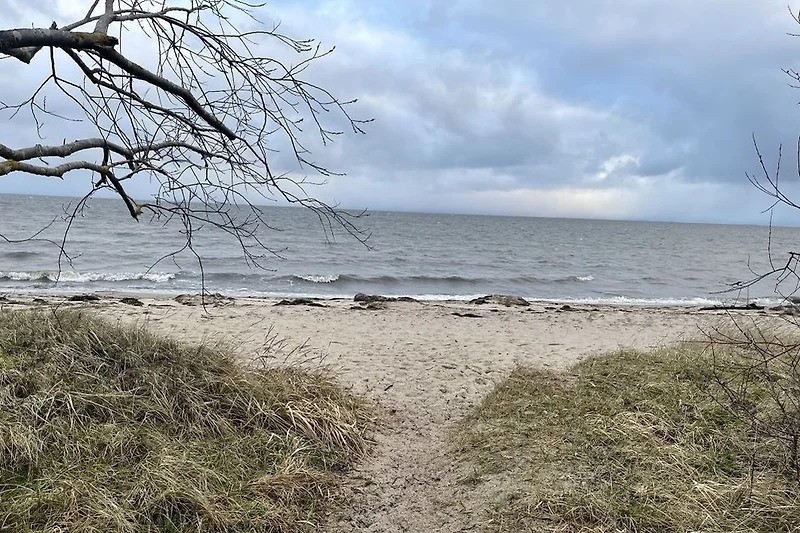 Nur 50 m bis zum Natursandstrand den Sie und Ihre Hunde kilometerweit in beide Richtungen erkunden können.