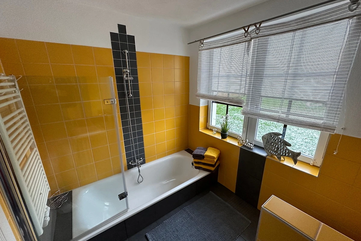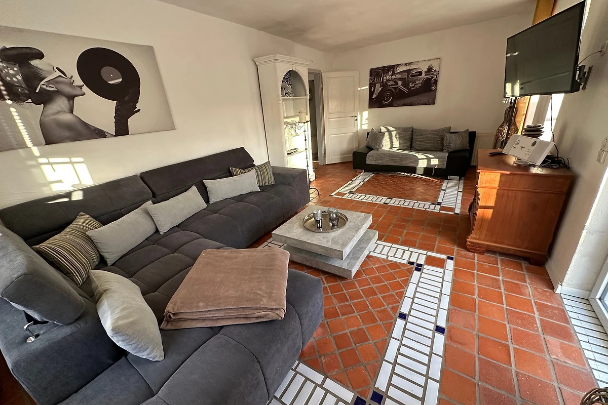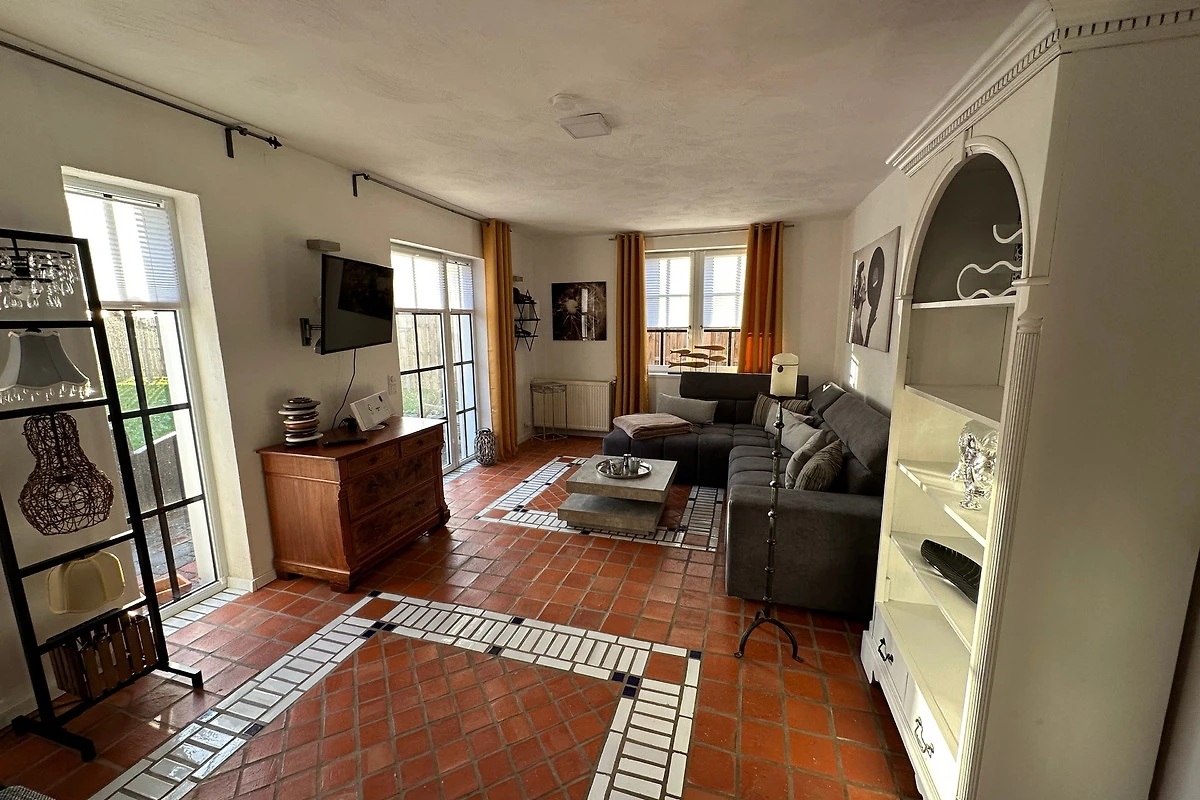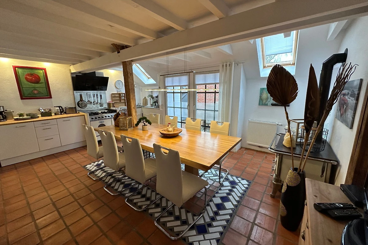 Entdecken Sie unser in 2022 renoviertes Juwel, die Erdgeschossferienwohnung "Huus an`t Koornfeld", gelegen in der idyllischen Kleinstadt Osteel. Umgeben von malerischen Feldern und Wiesen, in einer ruhigen Siedlung, bietet diese Unterkunft den perfekten Rückzugsort für alle, die Sehnsucht nach Natur, Ruhe und Erholung haben. Mit ihrer erstklassigen Lage ist die Ferienwohnung der ideale Ausgangspunkt für wunderschöne Wanderungen und Fahrradtouren durch die landschaftlich reizvolle Umgebung. Das Interieur der Ferienwohnung überzeugt durch seine Grosszügigkeit, Helligkeit und Sonnigkeit. Kürzlich einer umfassenden Renovierung unterzogen, erwarten die Gäste hohe Wohnstandards: von handgemachten Tonfliesen aus Marokko bis zu einer voll ausgestatteten Küche mit modernen Annehmlichkeiten wie einem neuen Kühlschrank mit Gefrierfach, einem Gasherd mit Backofen sowie einer Spülmaschine. Für optimalen Komfort sorgen zudem eine grosse Couchgarnitur mit Schlaffunktion, zusätzliches Schlafsofa und Sat-TV in Küche, Wohnzimmer und Schlafzimmer, während das kostenlose W-LAN eine problemlose Verbindung zur Aussenwelt sicherstellt. Im äusseren Bereich der Ferienwohnung lädt der weitläufige Garten mit seinem gepflegten Rasen, einer Terrasse inklusive Strandkorb, Sitzmöbeln und einem Holzkohlegrill zum Verweilen und Geniessen ein. Eine zwischen zwei alten Birken aufgespannte Hängematte bietet direkten Blick auf das angrenzende Kornfeld - ein idealer Ort zum Entspannen und Träumen unter freiem Himmel. Die Aussenmöbel, eine Tischgruppe mit 4 Stühlen und eine Lounge Garnitur, vervollständigen das Bild eines perfekten Aussenbereichs. Die Umgebung der Ferienwohnung ist geprägt durch die unverfälschte Schönheit der norddeutschen Landschaft - ein Paradies für Naturfreunde und Ruhesuchende. Neben den direkten Zugängen zu atemberaubenden Wander- und Radwegen laden die nahegelegenen malerischen Ortschaften Greetsiel und Norddeich, die nur wenige Kilometer entfernt sind, zu Erkundungstouren ein. Ob Sie die Küste entlangfahren oder die ländliche Gegend erkunden möchten – die Lage bietet die ideale Kombination aus ländlicher Ruhe und der Nähe zu attraktiven Ausflugszielen. Wir laden Sie herzlich ein, in unserer traumhaften Ferienwohnung "Huus an`t Koornfeld" abzuschalten, die Seele baumeln zu lassen und die einzigartige Verbindung von Komfort, Natur und norddeutscher Gastfreundlichkeit zu erleben. Gönnen Sie sich diese Auszeit – ein Ort, an dem Erholung und Naturerlebnis zu einer unvergesslichen Erfahrung werden.