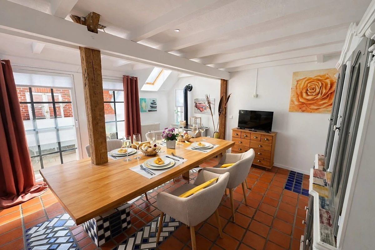 ? **Willkommen im „Huus an`t Koornfeld“ – Ihre Auszeit im Grünen** ? Entdecken Sie unsere liebevoll **2022 vollständig renovierte Erdgeschoss-Ferienwohnung „Huus an`t Koornfeld“** in der idyllischen Kleinstadt Osteel. Ruhig gelegen in einer gewachsenen Siedlung und umgeben von Feldern und Wiesen, bietet diese Ferienwohnung den perfekten Rückzugsort für alle, die **Erholung, Natur und Entschleunigung** suchen ?. Dank der ausgezeichneten Lage ist das „Huus an`t Koornfeld“ der ideale Ausgangspunkt für ausgedehnte **Rad- und Wandertouren** ?? durch die reizvolle norddeutsche Landschaft – fernab vom Trubel und doch nah an beliebten Ausflugszielen. --- ? **Helles Wohnen mit hochwertiger Ausstattung** Die Ferienwohnung besticht durch ihre **Grosszügigkeit, Helligkeit und sonnige Atmosphäre** ☀️. Hochwertige Materialien und liebevolle Details schaffen ein stilvolles und zugleich gemütliches Ambiente. Besonders hervorzuheben sind die **handgefertigten marokkanischen Tonfliesen**, die dem Interieur einen einzigartigen Charakter verleihen. ?️ **Voll ausgestattete Küche** Die moderne Küche lässt keine Wünsche offen und verfügt über: • neuen Kühlschrank mit Gefrierfach • Gasherd mit Backofen • Geschirrspülmaschine • umfangreiche Küchenausstattung ?️ **Komfort für entspannte Tage** Für maximalen Wohnkomfort sorgen: • grosse Couchgarnitur mit Schlaffunktion • zusätzliches Schlafsofa • Sat-TV in Küche, Wohn- und Schlafzimmer ? • kostenfreies WLAN ? --- ? **Gartenidylle mit Blick ins Kornfeld** Der grosszügige Aussenbereich ist ein echtes Highlight ?. Ein **gepflegter Garten mit Terrasse**, Strandkorb, Sitzmöbeln und Holzkohlegrill lädt zum Verweilen ein. Zwischen zwei alten Birken schwebt eine Hängematte mit direktem Blick auf das angrenzende Kornfeld – ein wunderbarer Ort zum Abschalten, Lesen oder Träumen ?. Eine Tischgruppe mit vier Stühlen sowie eine Lounge-Garnitur runden das stimmige Outdoor-Konzept perfekt ab. --- ? **Nordsee ganz nah** Die Umgebung begeistert durch ihre ursprüngliche Landschaft und wohltuende Ruhe. Gleichzeitig erreichen Sie die beliebten Küstenorte **Greetsiel** und **Norddeich** in nur wenigen Minuten ?. Ob Küstentour, Deichspaziergang oder Fahrradausflug durch das Binnenland – hier verbinden sich **ländliche Gelassenheit und vielfältige Freizeitmöglichkeiten** auf ideale Weise. --- ✨ **Gönnen Sie sich eine Auszeit im „Huus an`t Koornfeld“** ✨ Erleben Sie norddeutsche Gastfreundschaft, moderne Wohnqualität und die wohltuende Nähe zur Natur. Ein Ort zum **Ankommen, Durchatmen und Wohlfühlen** ?. ? **Virtuelle 360°-Besichtigung:** ? [https://my.matterport.com/show/?m=q9fwyn13qd7](https://my.matterport.com/show/?m=q9fwyn13qd7)