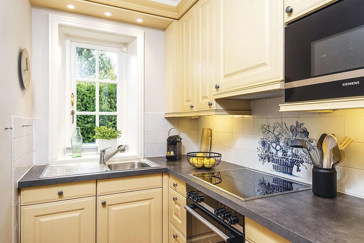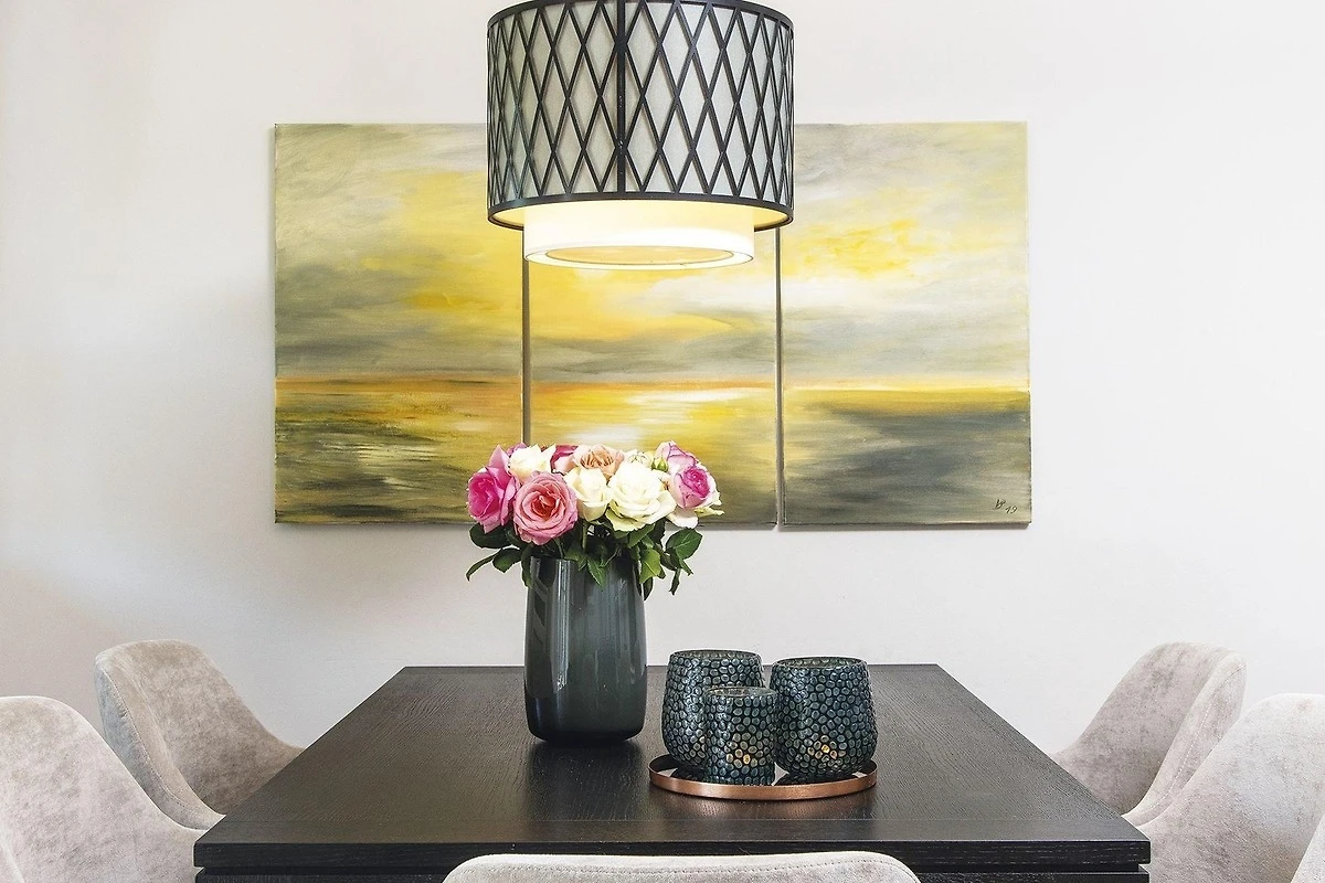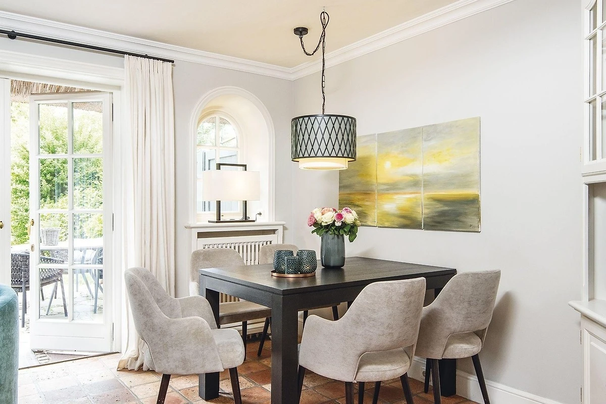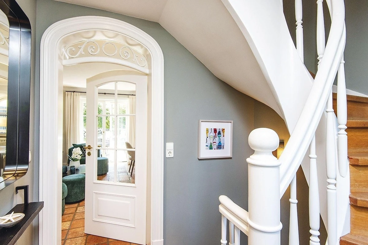 Gemütlichkeit trifft Stil - ein schönes Hausteil für Vier zentrumsnah und doch ruhig gelegen. Von der Haustür haben Sie sofort den Durchblick bis in den Garten mit Terrasse und Strandkorb zur Sonnenseite Süden. Das Erdgeschoss erfreut mit separater Küche und kombiniertem Wohn-/Essbereich in eleganten Naturtönen mit kleinen Farbakzenten mit gemütlichen Polstermöbeln, Kamin und schönem Esstisch für gemütliche Runden. Das helle Untergeschoss bietet ein Doppelschlafzimmer mit grossen Einbauschränken und gleich nebenan ein Wannenbad. Ein grosses Schlafzimmer mit Gartenblick und ein modernes Duschbad befinden sich im Obergeschoss. Das Quartier ist mit Terracotta- und Holzfussböden ausgestattet.