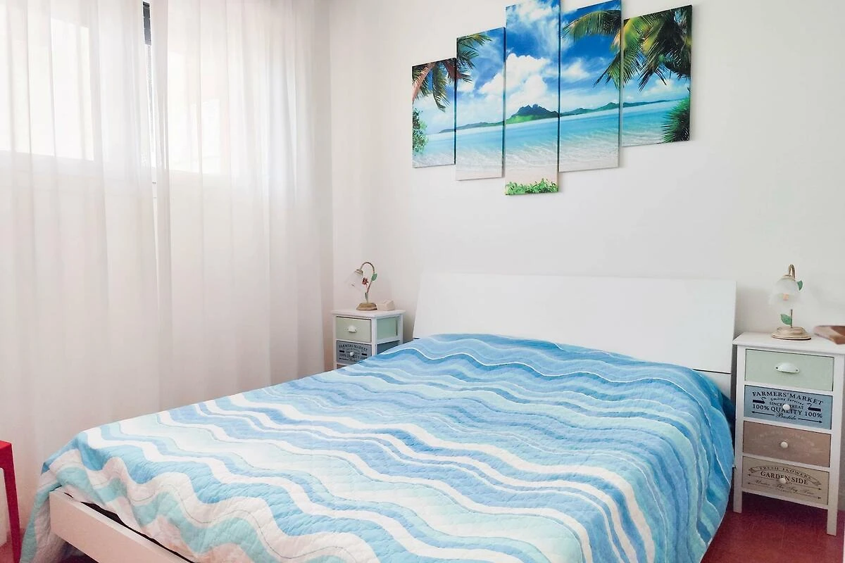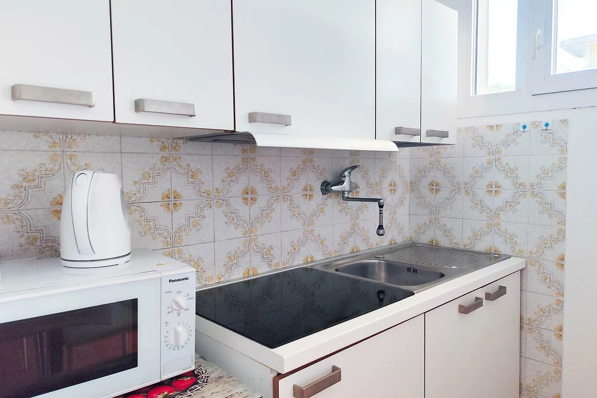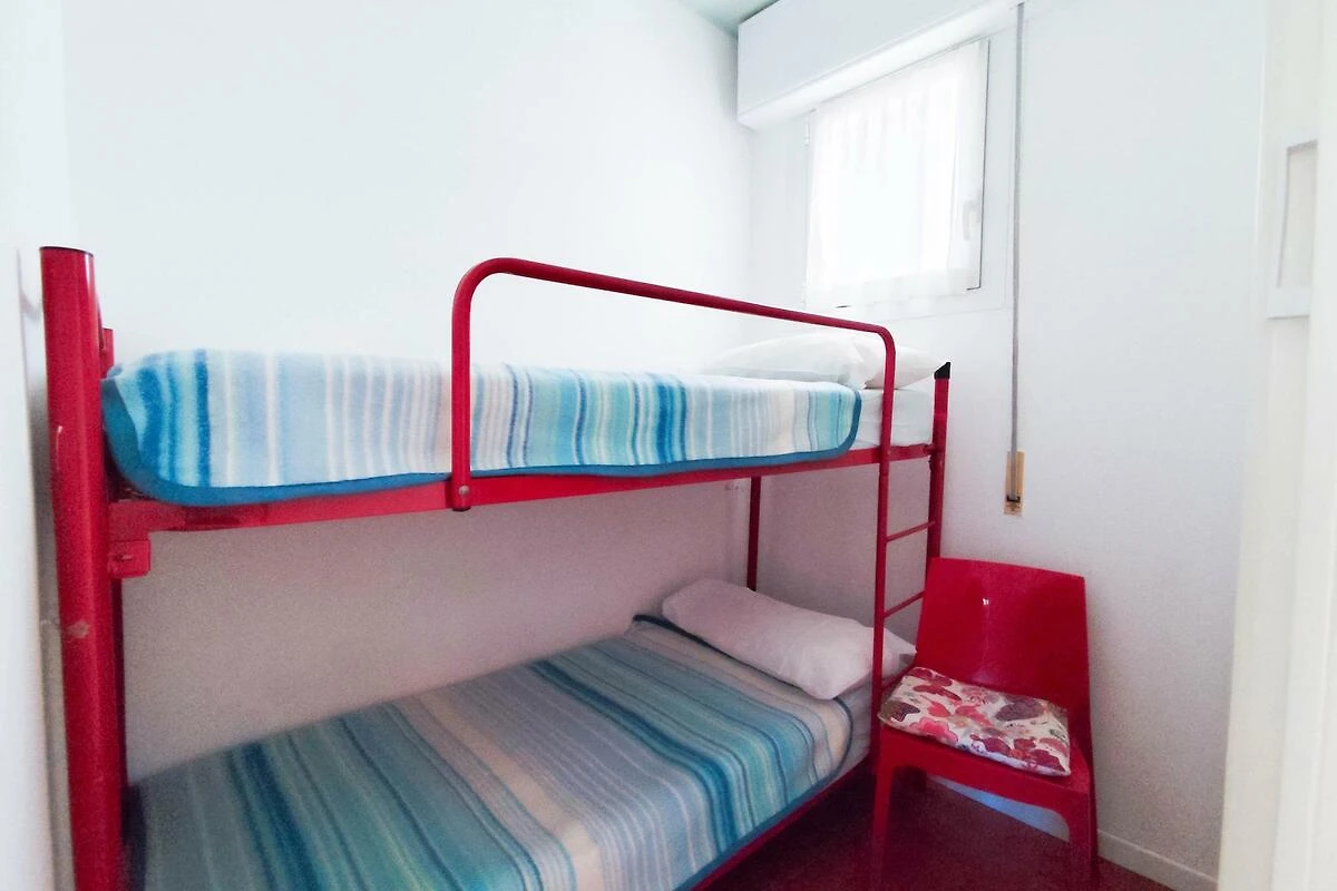 . Wohn/Schlafzimmer mit 1 Zusatzbett auf Couch/Sofa, TV, Klimaanlage, Essecke (5 Plätze) und Zugang zum Balkon (Gartenmöbel). Schlafzimmer mit 2 Kinderbetten und Die Kinderbetten sind Etagenbetten. Schlafzimmer mit 1 Doppelbett. Kochnische im Wohn/Schlafzimmer mit Gasherd und Kühlschrank. Bad mit Dusche, 1 Waschbecken, WC und Bidet.