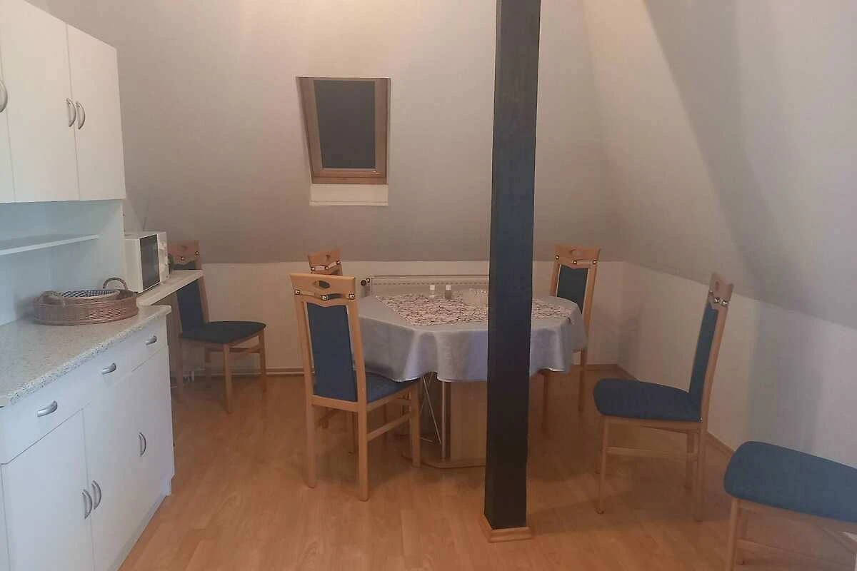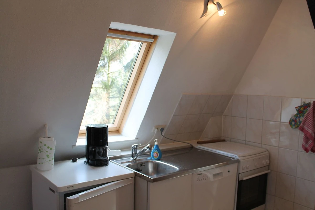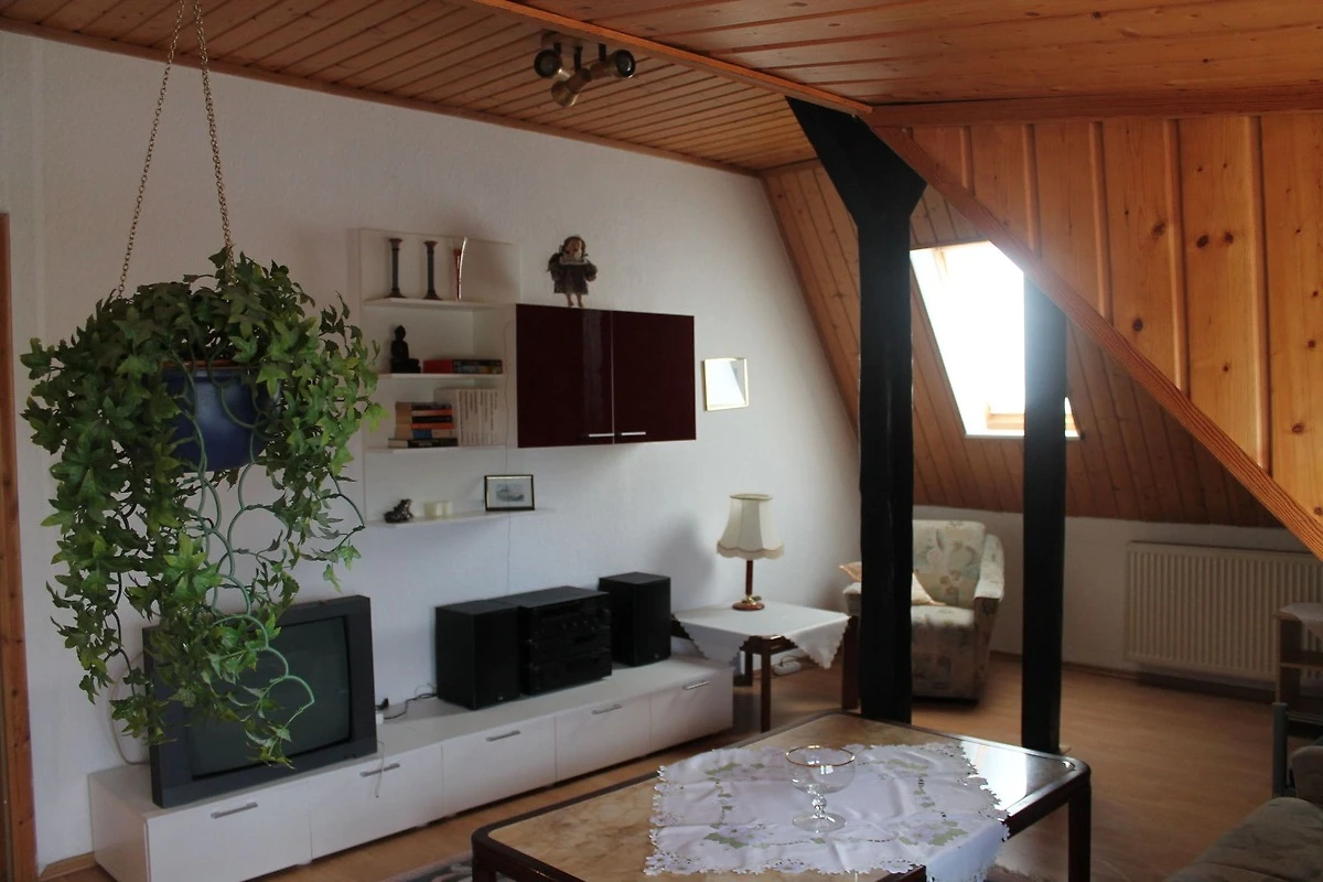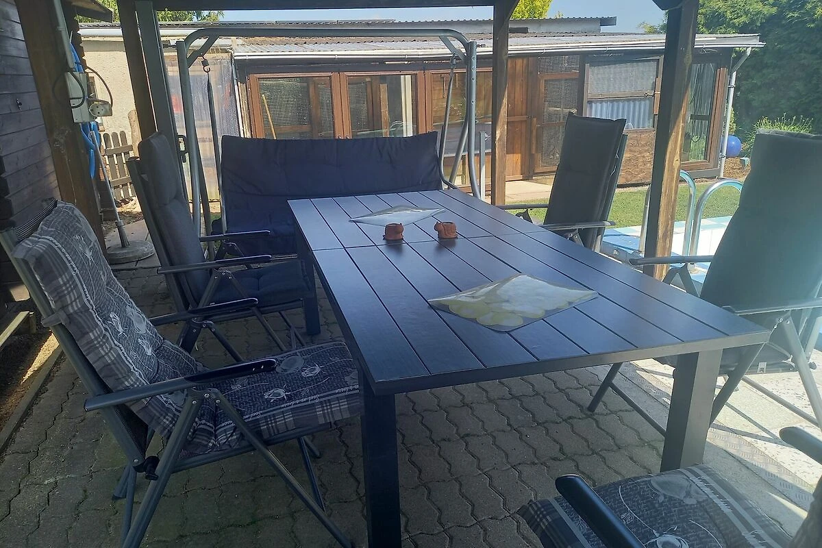 Die komfortable Ferienwohnung liegt im Dachgeschoß eines Einfamilienhauses und bietet Platz für maximal 3 Erwachsenen.. Die Wohnung verfügt über 1 großes Wohnzimmer, 1 schönes Schlafzimmer, 1 komplett ausgestattete Küche sowie 1 Badezimmer mit Dusche und WC. Auf dem Gartengrundstück befindet sich ein schöner Außen-Pool (1.60 m tief; 4.5 x 5m). Außerdem laden gemütliche Gartenmöbel und Sonnenliegen zum Entspannen und Verweilen ein. Für Grillfans ist eine Grillmöglichkeit vorhanden. Hier können Sie Ihren Urlaub so richtig genießen! Für die kleinen Gäste gibt eine Kinderschaukel mit Rutsche. Auf dem großen Gartengrundstück leben ein Hund sowie Papageien, Wellensittiche und Kanarienvögel in Volieren.
