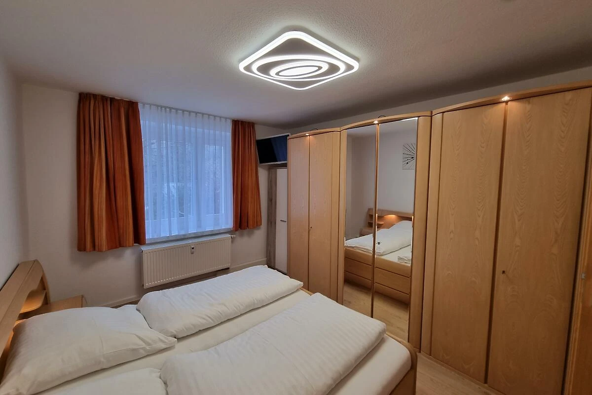 Am Ortsrand und dennoch zentral gelegene Wohnanlage mit Blick ins Grüne. Zwei sehr schöne und gepflegte Ferienwohnungen bieten wir Ihnen an. Die geschmackvoll und modern eingerichteten FeWos sind für bis zu 5 Personen plus Kleinkind (bis 2 Jahre) ausgestattet. Ein PKW-Stellplatz befindet sich direkt am Haus. Im Keller stehen Waschmaschine und Wäschetrockner zur Verfügung. In einem abschliessbaren Kellerraum können sie ihre Skiausrüstung oder Fahrräder unterstellen. Freies WLAN verfügbar Meine beiden Ferienwohnungen verfügen über je zwei Schlafzimmer für fünf Personen. Erstausstattung Bettwäsche, Handtücher und Geschirrtücher wird gesteltt. Die moderne Küche ist ist ausgestattet mit Herd, Backofen, Kühlschrank mit Eisfach, Spülmaschine, Kaffeemaschine, Wasserkocher, Eierkocher, Toaster, Mikrowelle und Geschirr. Das Wohnzimmer ist mit Ledercouch, Esstisch und Smart-Kabel-TV ausgestattet. Im Bad mit Fenster stehen WC, Waschbecken, Spiegel, Wanne, Duschabtrennung und Fön zur Verfügung. Bügeleisen, Bügelbrett und Staubsauger sind vorhanden. Babyreisebett (ohne Decken) und Hochstuhl werden bei Bedarf bereitgestellt.