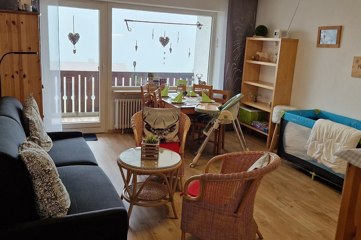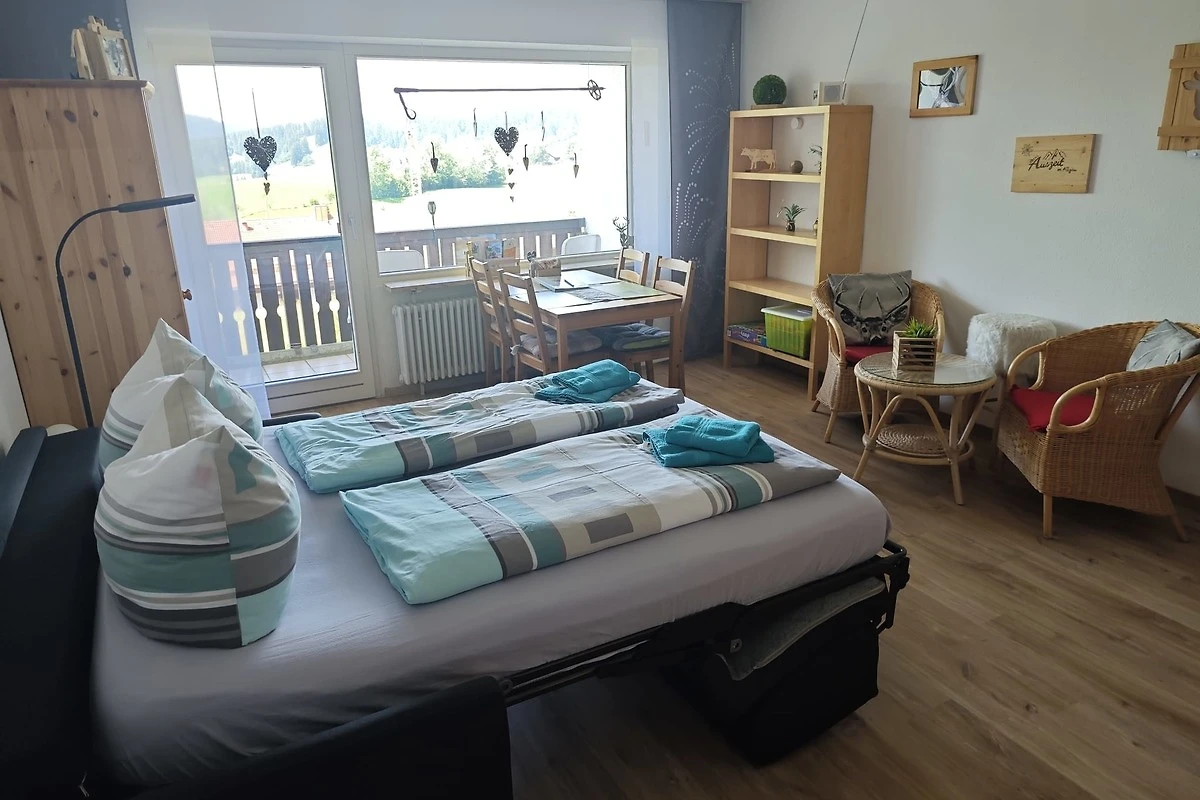 Schönes 2 Zimmer Appartement 45m² im Ferienpark Oberallgäu in Wilhams für 4 Personen im Erdgeschoss mit Balkon. Das Hallenschwimmbad (14x8 m) ist täglich von 09:00-22:00 Uhr geöffnet, die Sauna kann täglich von 16:00-22:00 Uhr (kostenpflichtig) genutzt werden. Spielplätze, Wanderwege, Badeseen in der Nähe. Schöner Ausblick zur Skipiste und Skiloipe.