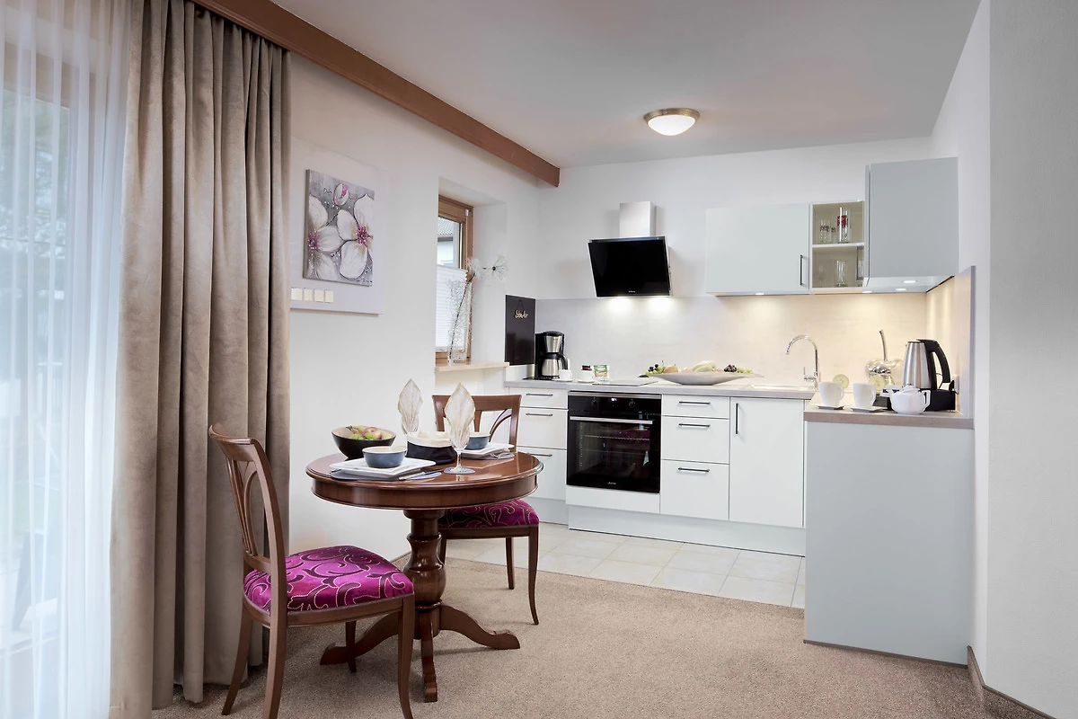Ein elegantes Appartement (ca. 45m²) in unserem Haus Marie mit besonderem Charme eignet sich perfekt für eine Pärchen-Auszeit. Eine integrierte Wohnküche, ein schönes Badezimmer mit Dusche/WC und das separate Schlafzimmer bieten einen idealen Ort zum Wohlfühlen. Das Appartement mit Terrasse hat einen direkten Zugang zum Gartenbereich.