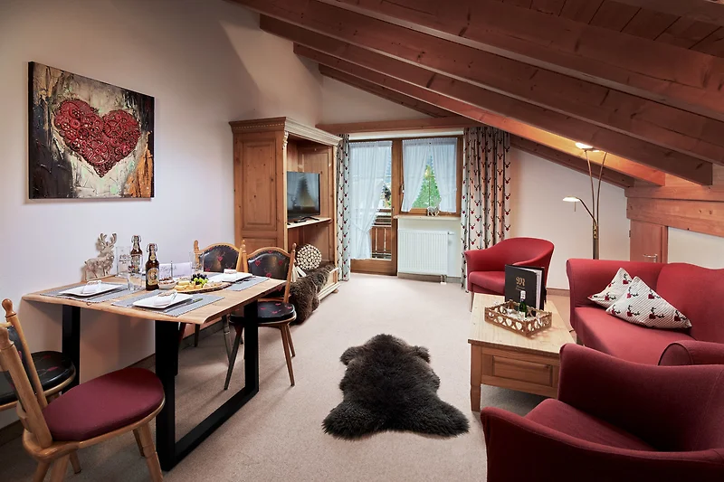 Das Dachgeschossappartement Marie für 2 - 4 Personen ca. 70qm ist geschmackvoll im alpenländischen Stil mit viel Liebe zum Detail eingerichtet.