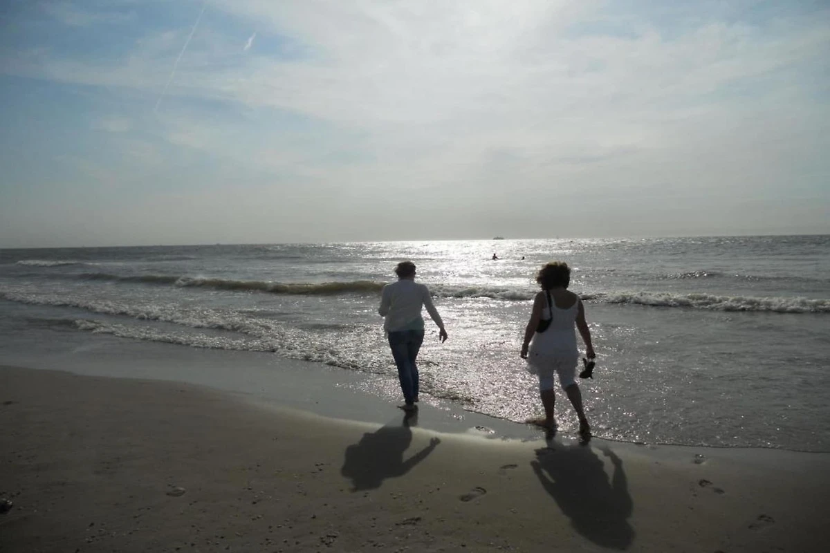 Draußen haben Sie eine überdachte Terrasse mit Gartenmöbeln. Von hier aus genießt man einen wunderschönen Blick auf das Meer. Den Eingang des Strandhauses erreichen Sie über wenige Stufen vom Strand aus, es gibt kein Treppengitter. Von Ihrem Ferienhaus aus können Sie direkt den Strand betreten. Sie parken Ihr Auto auf dem öffentlichen Parkplatz. Der nächste Parkplatz ist Parking Noorderbad in der Straße Dorpsduinen. Über einen befestigten Weg über den Strand gelangen Sie dann zu Fuß zu Ihrem Strandhaus.