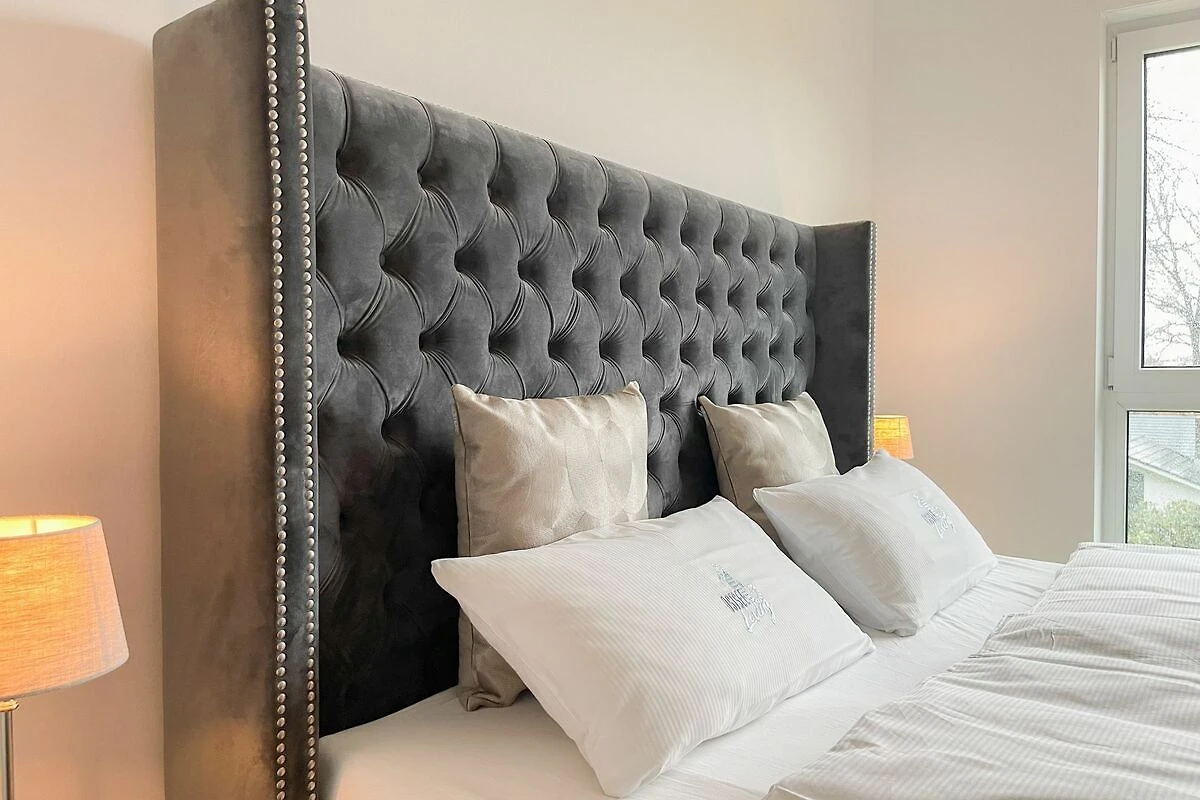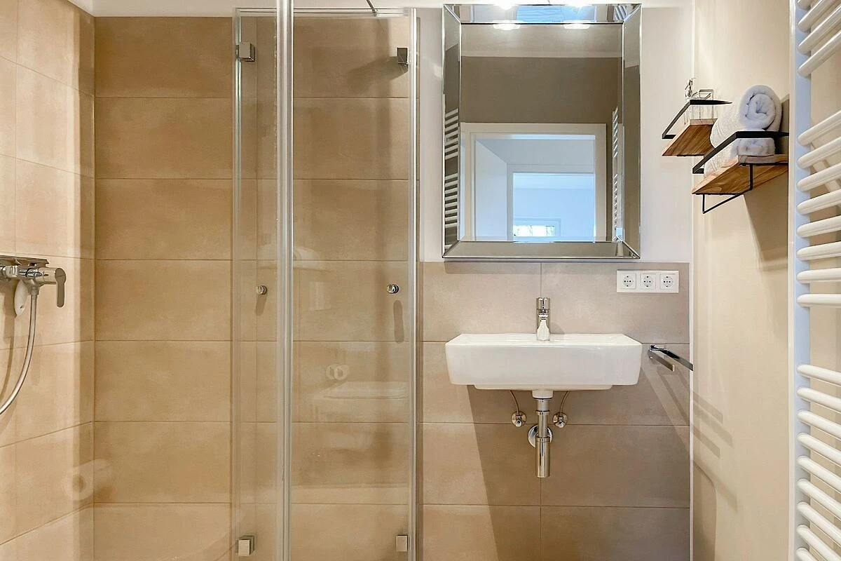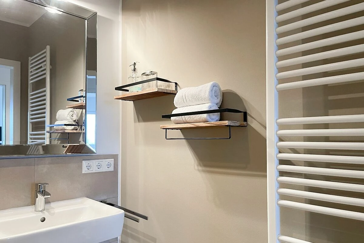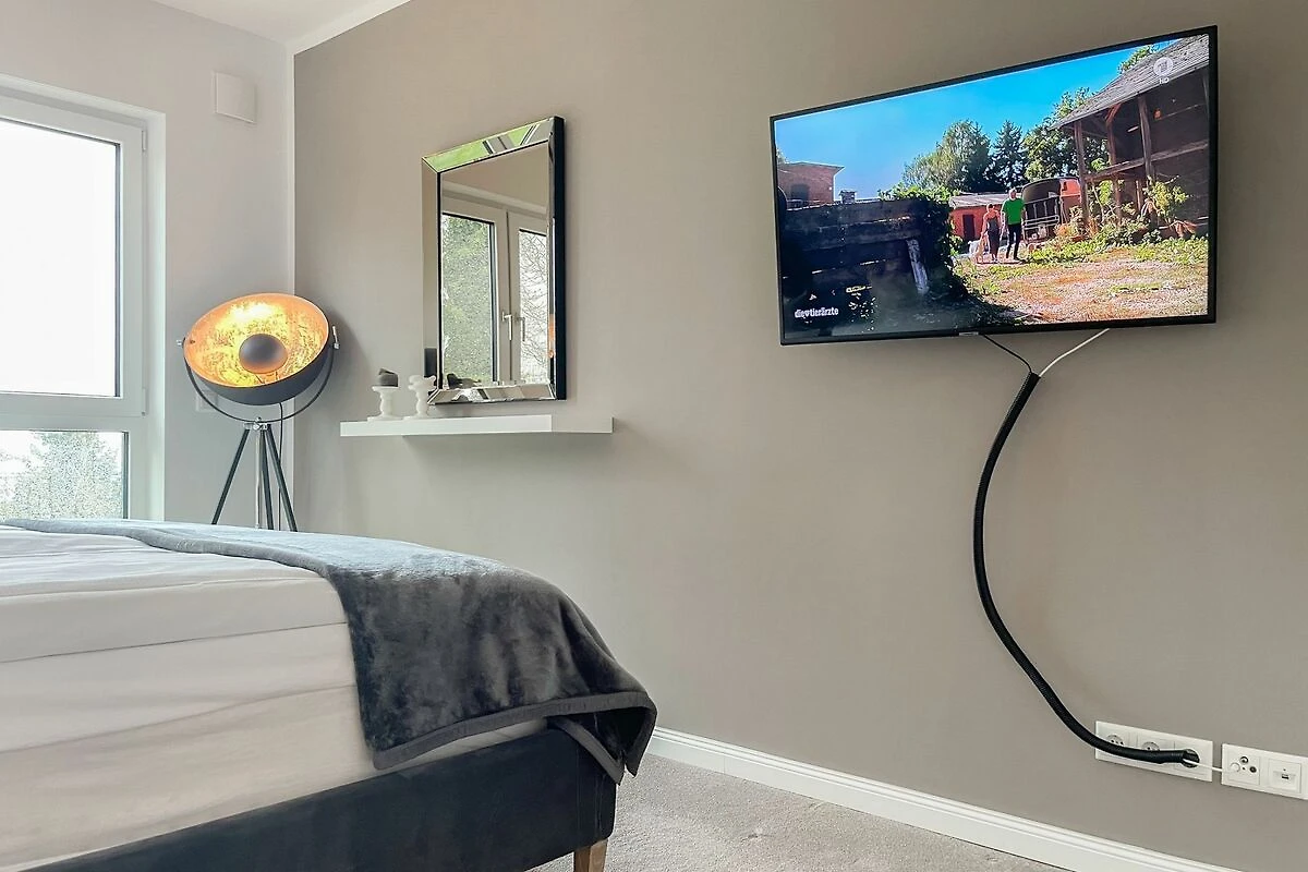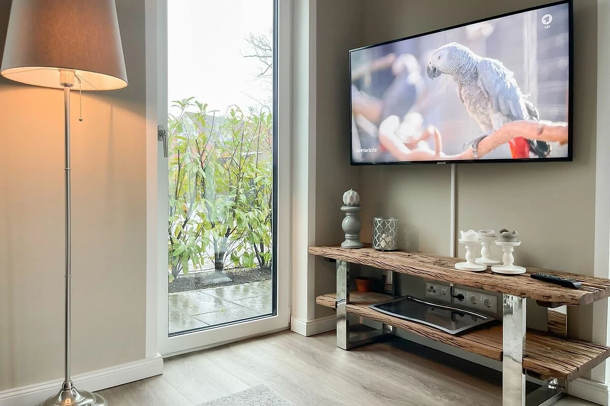 Es erwartet Sie eine äusserst hochwertig ausgestattete und geschmackvoll eingerichtete Ferienwohnung, die mit 2 separaten Schlafzimmern ausreichend Raum für 4 Personen bietet, um einen entspannten Urlaub in einem herrlichen Ambiente zu verleben. Fussbodenheizung, elektrische Aussenjalousien und bodentiefe Fensterelemente, die für ein offenes Raumgefühl sorgen, gewährleisten einen hohen Wohnstandard. Mittelpunkt der Ferienwohnung bildet die Siematic Design Küche mit Kochinsel in bester Ausstattung, die zum gemeinsamen Kochen einlädt und der anschliessende Essbereich im Hampton Style. Der behagliche Wohnbereich, eingerichtet mit Sofa und TV, bietet Blick und Zugang auf die grosszügig angelegte Westterrasse mit Gartenmöbeln und Sonnenliegen, um den Tag bei einem Glas Wein ausklingen, um den Tag bei einem Glas Wein mit Ostseeblick ausklingen zu lassen. Beide Schlafzimmer bieten einen herrlichen Ausblick bis auf bis auf das Meer und sind mit hochwertigem Teppichboden,[nbsp] Doppelbetten (180x200) und einem Kleiderschrank ausgestattet. In einem der Schlafräume befindet sich ein zusätzlicher Fernseher.[nbsp] Im Flur des Eingangsbereichs steht ein weiterer Einbauschrank für Jacken und Mäntel zur Verfügung. Das Bad ist sehr hochwertig und modern, ausgestattet mit einer XXL Walk In Dusche. Waschmaschine und Trockner befinden sich in einem Einbauschrank. WLAN steht selbstverständlich zur kostenlosen Nutzung zur Verfügung. Fahrräder können auf der Terrasse der Wohnung abgestellt werden.