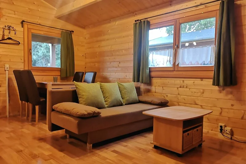 Mit Platz für bis zu 4 Personen (40 qm) laden unsere kleinen Ferienhäuser herzlichst Paare, Kleinfamilien oder Freunde zum Verweilen ein. In den 2 getrennten Schlafzimmern finden Sie einmal 1 Doppelbett mit den Massen 1,40 x 2,00m und 1x ein Doppelbett mit 1,60 x 2,00m. Der Wohnbereich ist mit Satelliten TV, Radio, Couch und einem Esstisch ausgestattet. In der offenen Küche finden Sie neben einem Herd, Backofen & Spüle auch eine Filter-Kaffeemaschine, Toaster, Pfannen, Töpfe, Geschirr, Gläser, etc.