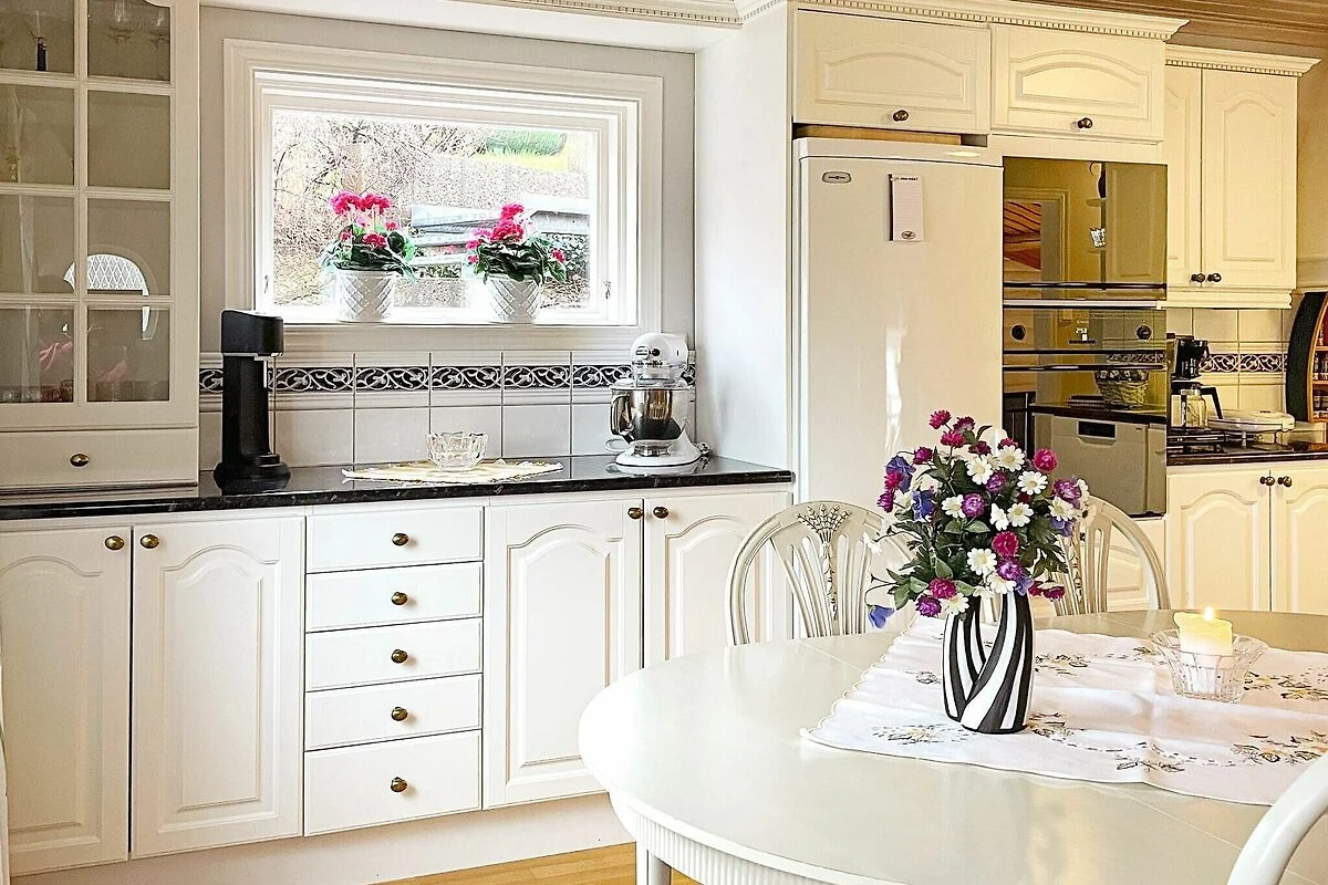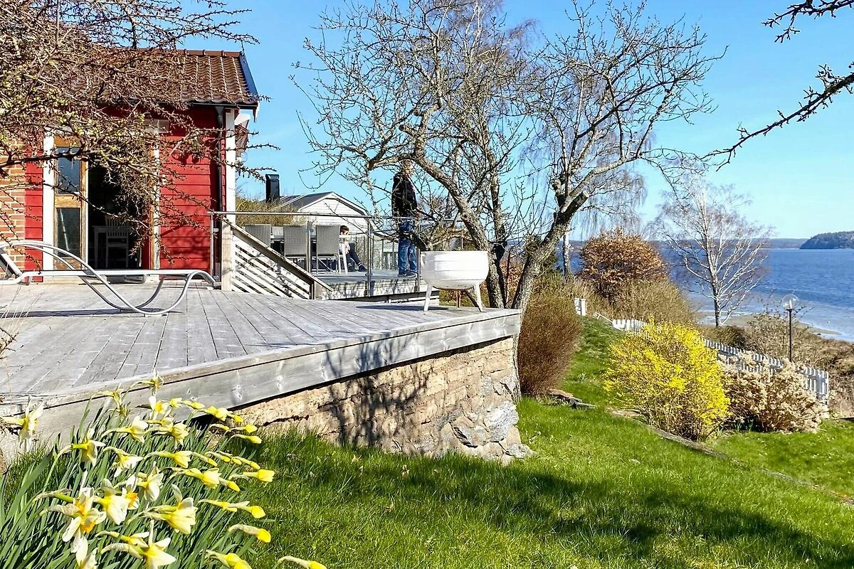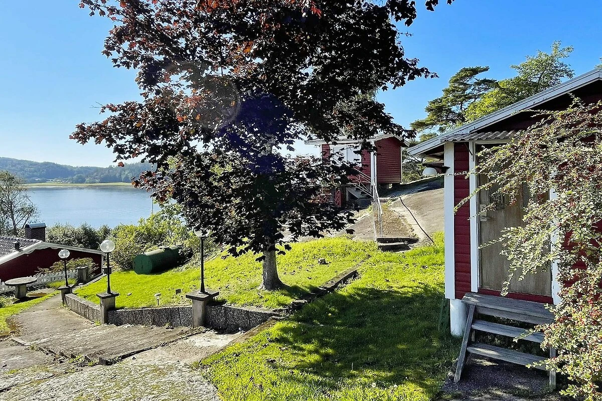 Willkommen zu einem herrlichen Panoramaausblick auf den Hafstensfjord! Diesen bietet dieses geräumige Ferienhaus, das von kleinen Häusern und Sommerhäusern umgeben ist, mit dem Meer direkt unterhalb. Die Gegend ist ruhig und perfekt für Familien mit Kindern, die hier Sonne, Meer und Küste genießen können. Das geräumige Ferienhaus ist gemütlich und hell. Es hat zwei Schlafzimmer und ein Bad. Dazu kommen zwei separate Annexe auf dem Grundstück mit weiteren Schlafplätzen. Insgesamt können hier bis zu 8 Personen übernachten. Der Eingang befindet sich an der Seite des Hauses und Sie betreten direkt in ein schönes Wohnzimmer. Das Zimmer ist geräumig mit hohen Decken und einem Essbereich für mindestens 6 Personen. Wohn- und Essbereich haben einen offenen, angenehmen Grundriss. Hier gibt es gemütliche Sofas und Sessel mit TV-Ecke. Eine kleine Treppe führt Sie in die gut ausgestattete Küche. Auch hier gibt es Sitzgelegenheiten für 6 Personen. Der Flur nach unten führt zum Badezimmer auf der linken Seite. Das Badezimmer ist komplett gefliest mit Duschkabine, WC und Waschbecken. Geradeaus geht es zu einem der Schlafzimmer des Hauses. Es ist ein sehr schönes Schlafzimmer mit einem Doppelbett. Über einen kleinen Treppenabsatz gelangt man in das darunter liegende Zimmer mit einem Etagenbett mit 120 cm breiter Liegefläche in der unteren Koje und einer 90 cm breiten Oberkoje. Dieses Schlafzimmer hat eine Tür zum Terrasse mit wunderschönem Meerblick. Im Außenbereich führt ein beleuchteter Pfad zu den beiden kleineren Annexen mit jeweils Kühlschrank und Wasserkocher. Ein Annex ist mit Doppelbett, der andere mit zwei Einzelbetten ausgestattet. Beide Annexe bieten herrliche Aussicht. Die Unterkunft steht auf einem abfallenden, hügeligen Grundstück, das Ihnen diese unglaubliche Aussicht bietet. Der Altan des Haupthauses lädt zum Sonnenbaden und Verweilen ein. Bitte beachten: Zwischen Grundstück und nahem Badeufer verläuft eine stark befahrene Straße, die Sie vor allem mit Kindern beachten sollten. Parken können Sie gleich unterhalb der Straße oder zum Ein- und Ausladen hinter dem Haus. Gute Ausgangslage für Tagesausflüge nach Nordens Ark, Havets Hus in Lysekil oder zu Liseberg in Göteborg, etwa 1 Autostunde entfernt.