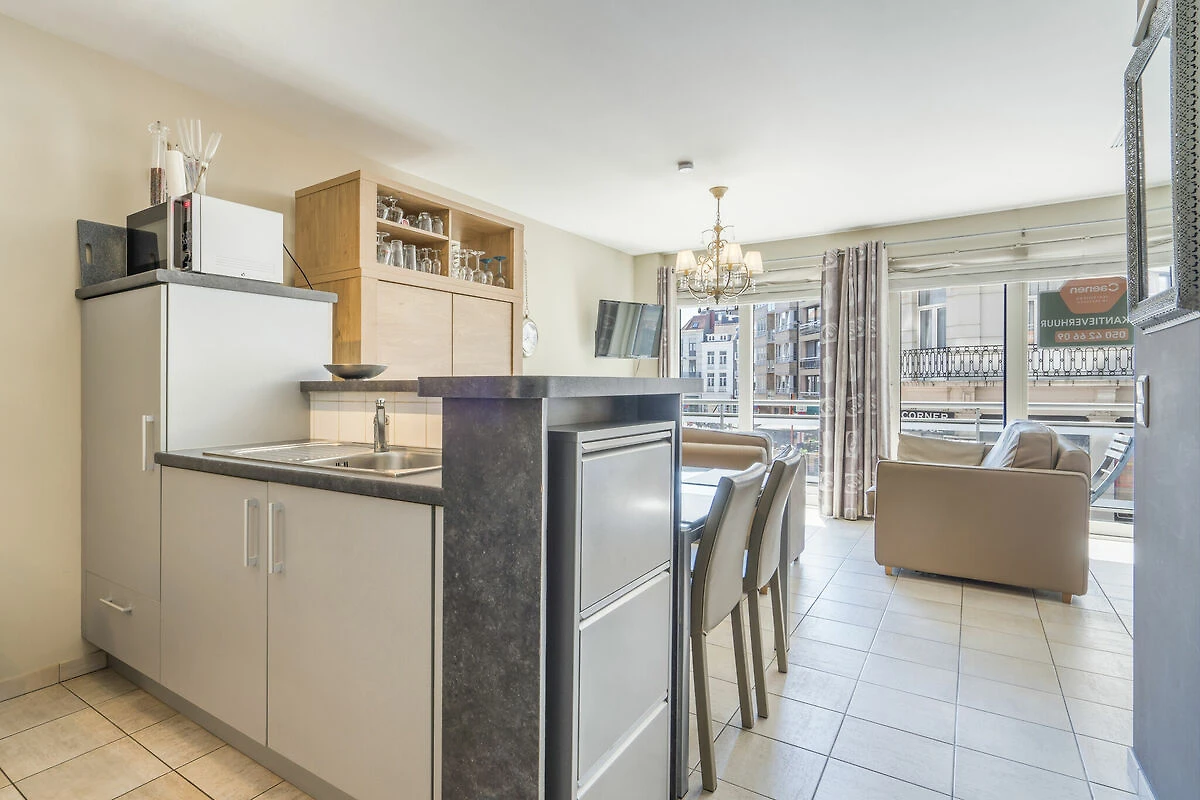 Betreten Sie dieses stilvolle und gemütliche Studio im Herzen von Blankenberge – perfekt für Paare, kleine Familien oder einen Wochenendtrip mit Freunden. Der helle, offene Grundriss bietet eine voll ausgestattete Küche mit allen wichtigen Geräten für hausgemachte Mahlzeiten. Der einladende Wohnbereich verfügt über ein bequemes Schlafsofa und öffnet sich zu einer privaten Terrasse mit Blick auf den belebten Casino-Platz – ideal für den Morgenkaffee oder abendliche Drinks. Ein separater Schlafbereich mit einem bequemen Doppelbett sorgt für erholsamen Schlaf, und das Badezimmer mit Badewanne/Dusche bietet zusätzliche Entspannung nach Strandabenteuern.