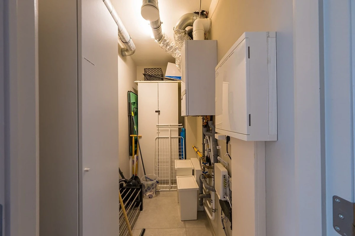 Parterre: (Wohnzimmer(TV, Esstisch, Sitzecke), Küche(Wasserkocher, Kaffeemaschine, Backofen, Spülmaschine, Kühlschrank(+ Gefrierfach)), Schlafzimmer(Doppelbett), Schlafzimmer(Einzelbett, Einzelbett), Badezimmer(Dusche), Toilette(guest toilet), bicycle room, Abstellraum, Garage, Internet, Terrasse, Parkplatz, Aufzug)