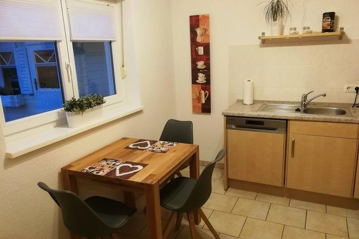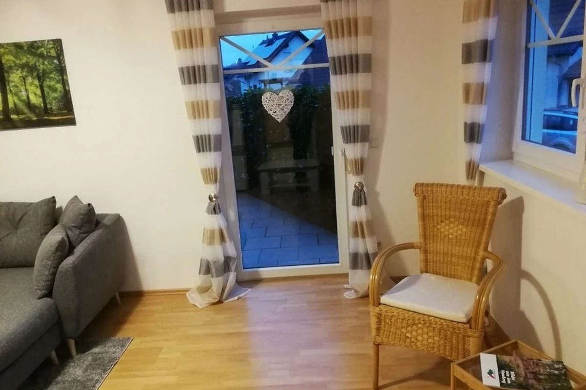 Neu eingerichtete Wohnung mit separatem Eingang. Hell und lichtdurchflutet mit Wohnzimmer, Schlafzimmer, Küche, Bad, Flur und Abstellraum. Die Möglichkeit für ein Kinderbett oder Zusatzbett ist gegeben. Die Wohnung ist gediegen, modern und sehr gemütlich, umfangreich ausgestattet.