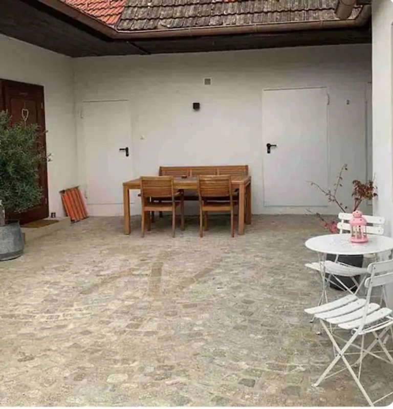 Im Innenhof kann man gemütlich frühstücken oder auch am Abend bei einem Glas Wein die Ruhe und den Sternenhimmel geniessen.