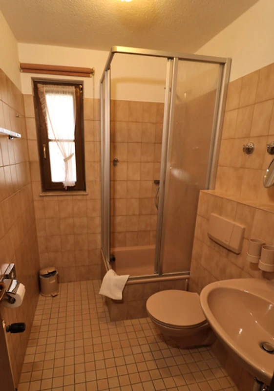 - Bad mit Dusche, Waschbecken, WC und Föhn