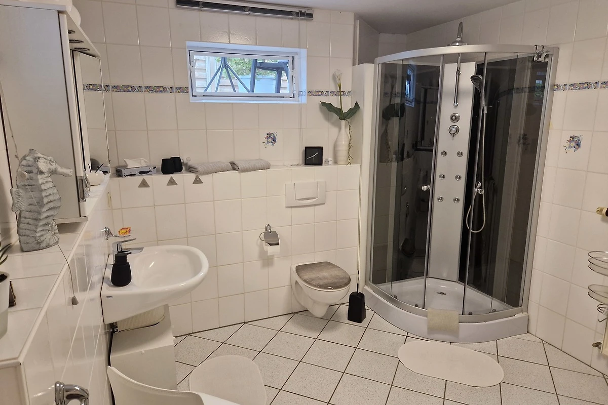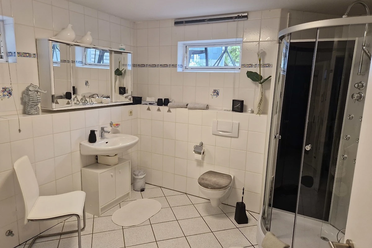 Unser Apartment nahe dem Möhnesee, lädt mit einer gemütlichen Wohnatmosphäre und einer modernen Ausstattung zum Wohlfühlen ein. Es verfügt über einen Wohn- Essbereich mit gemütlicher, ausziehbarer Couchecke, sowie einem Smart TV, WLAN, DVD Player, Bücher und Gesellschaftsspielen. Die Küche ist gut ausgestattet mit Ceranfeld, Backofen, Kühl- Gefrierkombination, Mikrowelle, Toaster, Wasserkocher, Eierkocher, sowie einer Kaffeemaschine. Eine Senseo Kaffeemaschine kann zur Verfügung gestellt werde. Im Schlafzimmer befindet sich ein Doppelbett, 1,80 x 2,00 m, ein Kleiderschrank, sowie ein Flachbild TV.