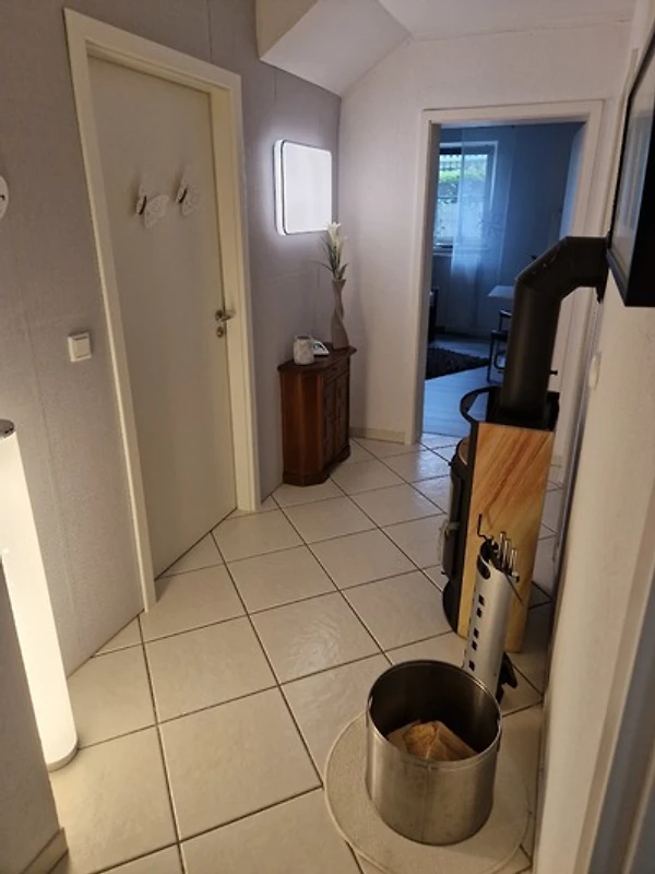Das grosszügige Bad verfügt über Dusche, Waschbecken, WC und Fön. Für die kühleren Tage steht neben Heizungen auch ein Kaminofen im Flurbereich zur Verfügung. Rauchen ist im Apartment nicht erlaubt. Im Aussenbereich befindet sich eine abschliessbare Fahrradgarage, sowie eine überdachte Sitzmöglichkeit, die zum Verweilen einlädt und wo auch ein Aschenbecher zur Verfügung steht.