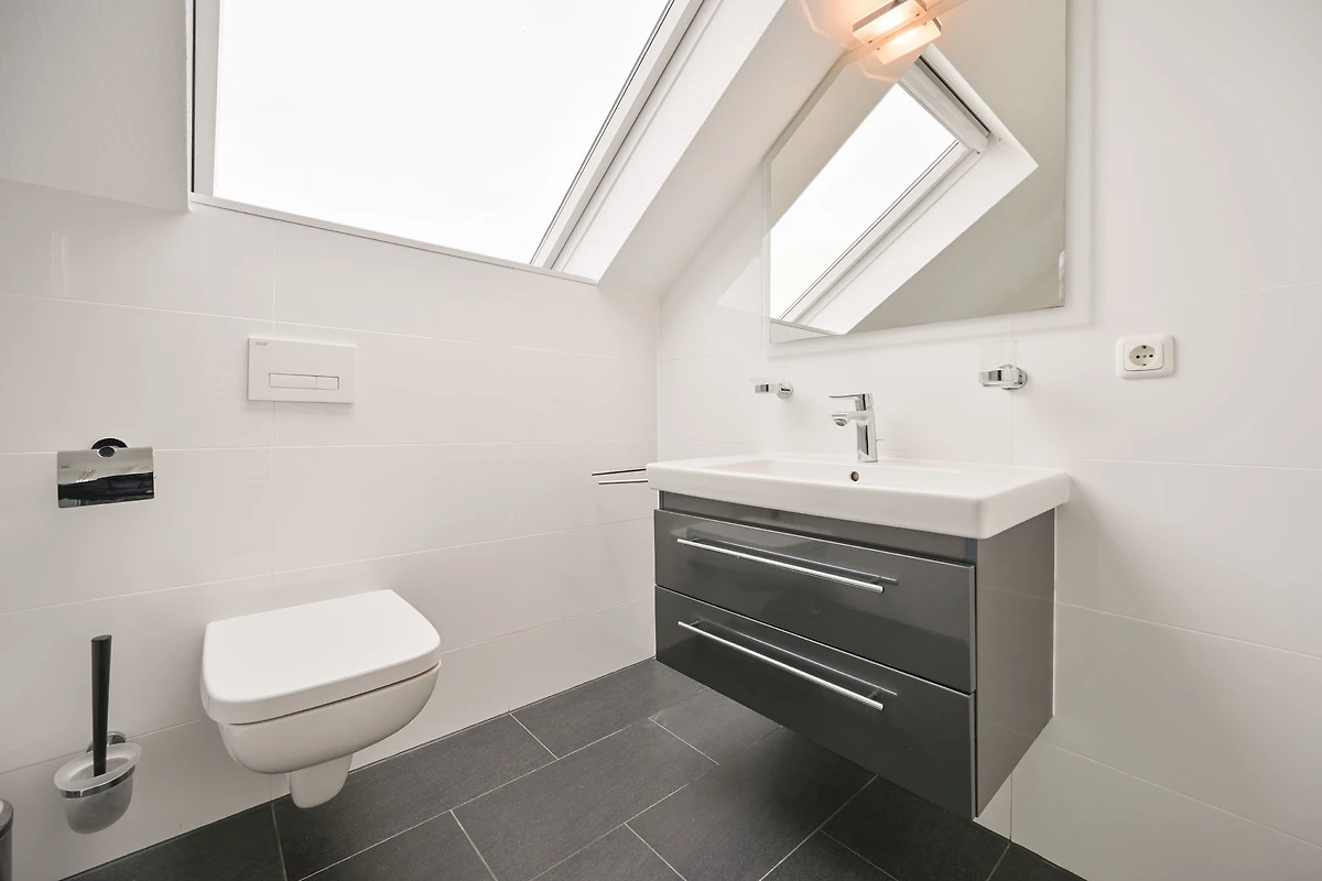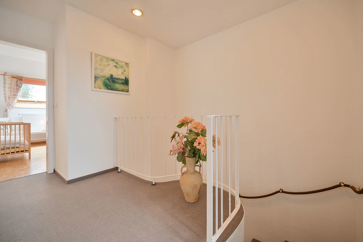 Im oberen Geschoss finden Sie 3 Schlafzimmer und ein modernes Tageslichtbad mit Badewanne und Duschgelegenheit.