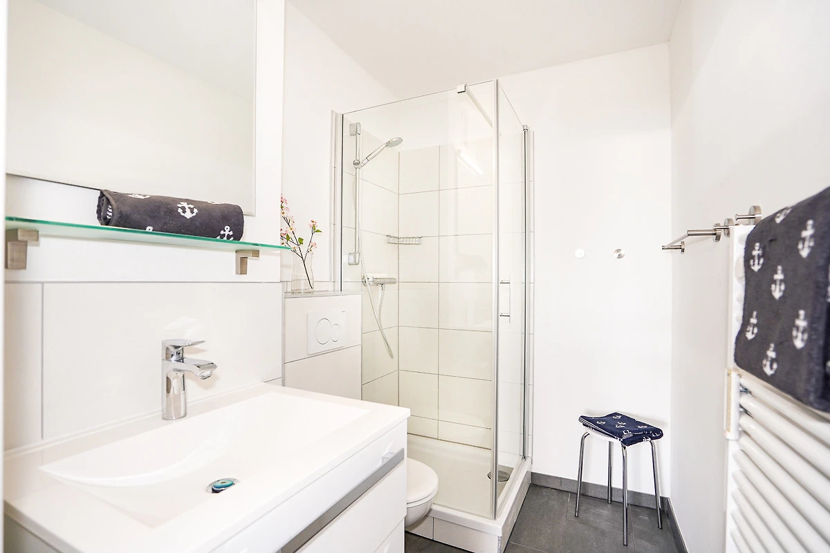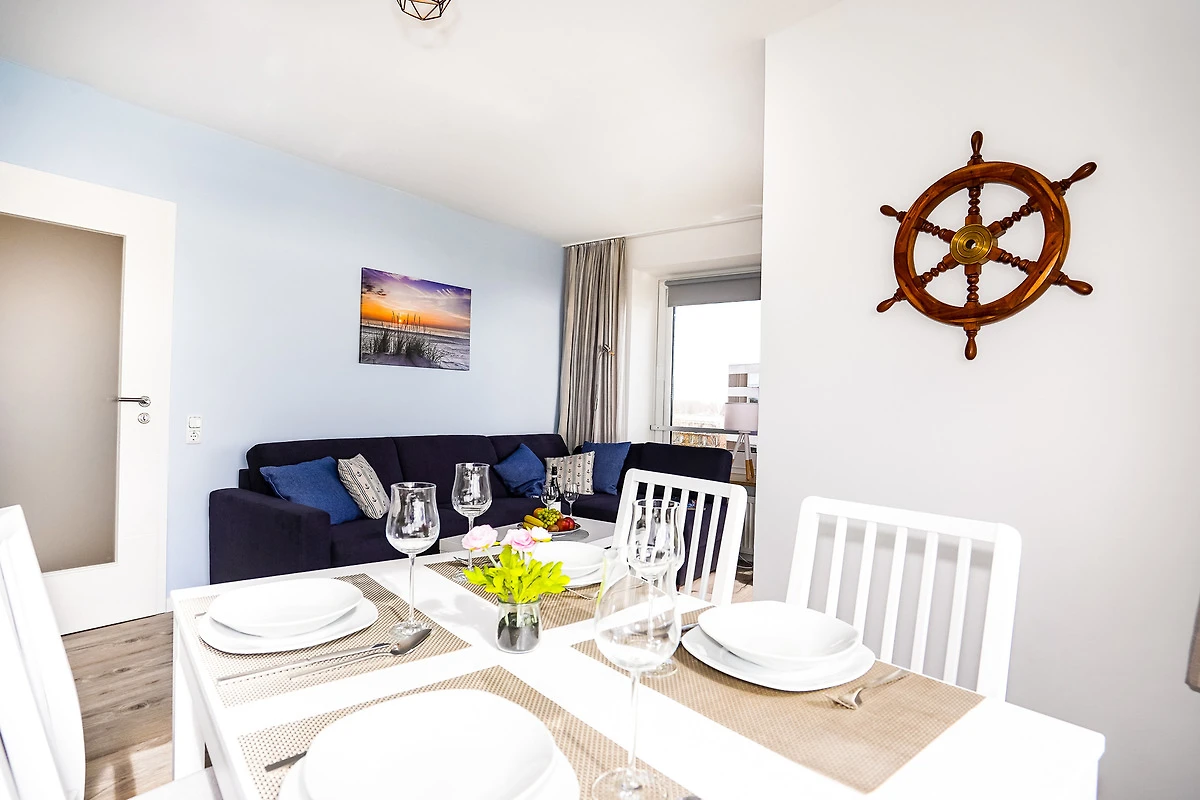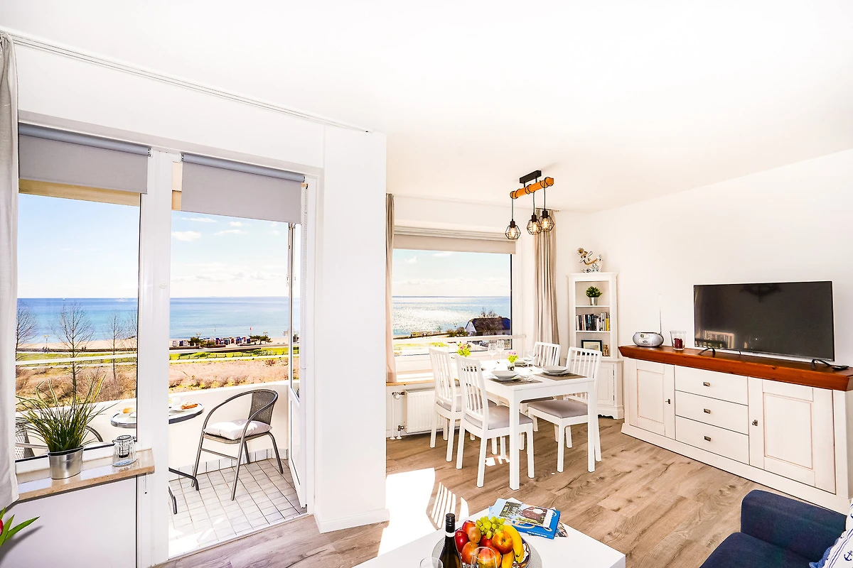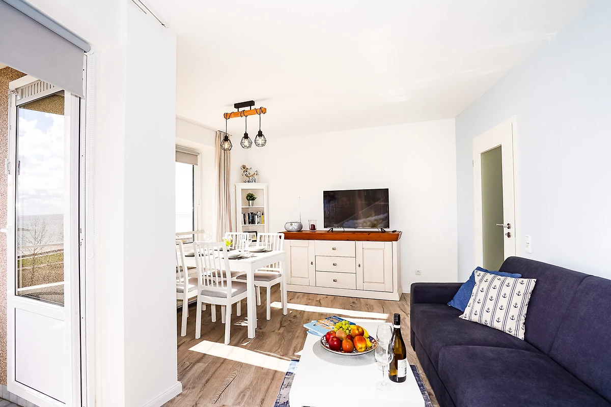 Das Wohnzimmer bietet Ihnen ein hochwertiges Sofa mit Matratze, welches als Schlafcouch (140 x 200) verwendet werden kann. Geniessen Sie bereits beim Frühstück am grossen Esstisch einen traumhaften Blick auf die Ostsee. Nach einem aufregenden Tag am Strand entspannen Sie vor dem grossen Fernseher oder auf dem gemütlichen Balkon. Kostenloses W-LAN steht Ihnen selbstverständlich während Ihres Aufenthaltes zur Verfügung.
