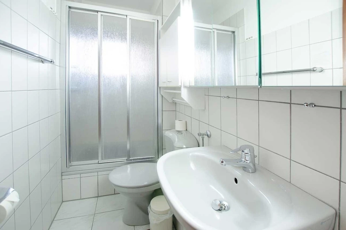 Das Badezimmer ist ausgestattet mit Dusche und WC.