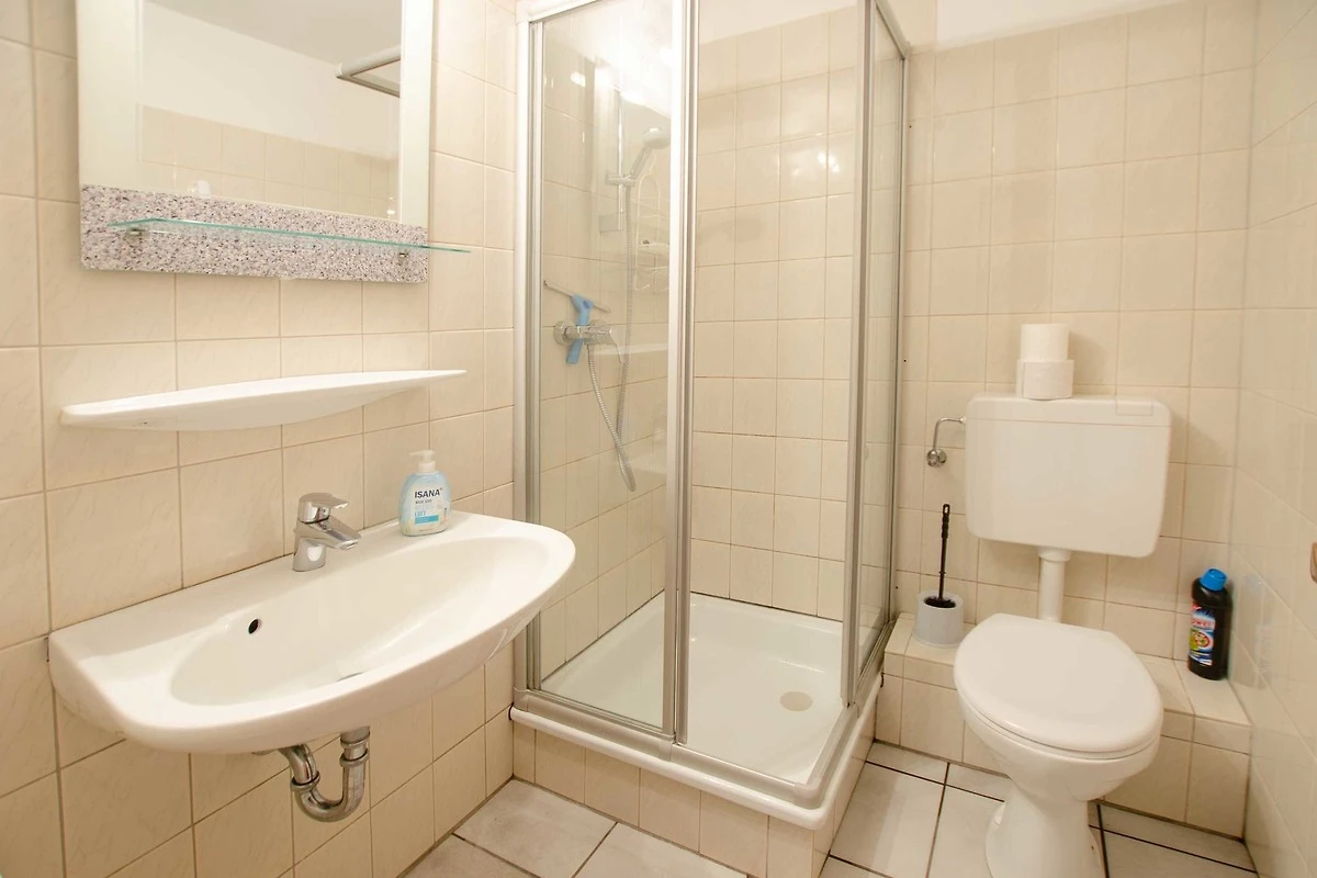 Schnuckelig kleine Keller Ferienwohnung. Für 3 Personen absolut ausreichend. Leider keine geschirrtücher oder abwaschlappen vor Ort. Leider auch nur eine Rolle Toilettenpapier vor Ort gewesen. Und der Dusch Eingang sehr sehr schmal. Und besonders Vorsicht geboten bei der Treppe zur Wohnung, wenn es Regnet Leider sehr glatt. Abschließbare Abstellraum für Fahrräder top vorhanden. Ruhige schöne wohnlage. Sehr nette freundliche Mitarbeiter vor Ort.