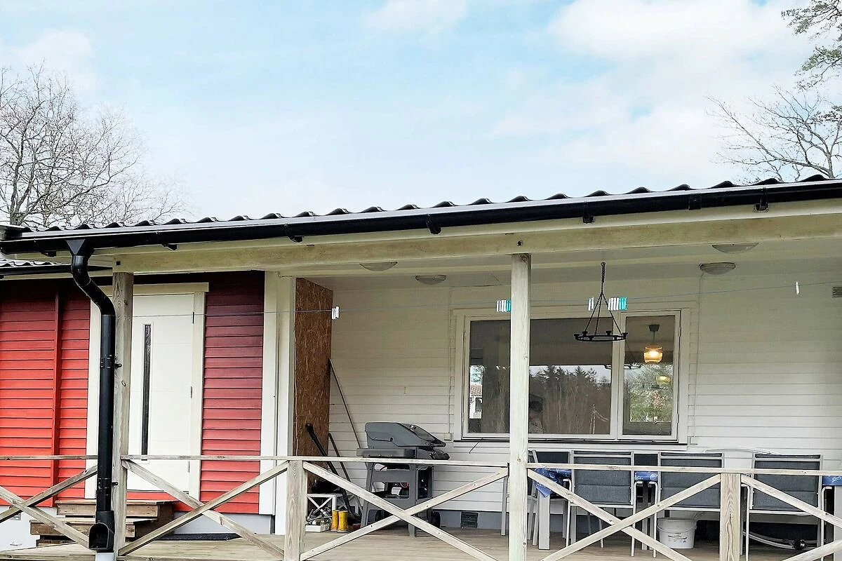 Willkommen zu einem erholsamen Urlaub in diesem teils renovierten Ferienhaus auf Hakenäset, im Osten der Insel Tjörn. Vom Eingang geht es in den hellen Eingangsbereich und direkt weiter in die offene Küche, die renoviert und komplett ausgestattet mit Kühlschrank mit Gefrierfach, Herd, Backofen, Mikrowelle, Kaffeemaschine und einem Esstisch mit Platz für 6 Personen. Weiter geht es in das große Wohnzimmer mit einem bequemen Sofa, das sich leicht in einen 200 cm breiten Schlafplatz für 2 Personen umwandeln lässt. Auf der gleichen Etage befindet sich auch das Badezimmer mit Dusche und Waschmaschine sowie ein Schlafzimmer mit einem 180 cm breiten Doppelbett sowie einer Terrassentür. Im Außenbereich des Hauses finden Sie eine schöne, vor Einblicken geschützte Terrassenfläche mit Dachkonstruktion, auf der Sie das Abendessen genießen und die letzten Sonnenstrahlen des Tages erleben können. Auf dem Grundstück steht zudem ein 10 m2 großer, separater Annex mit kleiner Veranda. Darin stehen zwei weitere Schlafplätze bereit. Es gibt zudem 2 Gästebetten von Ikea, die für Kinder geeignet sind. Diese Unterkunft befindet sich in einem ruhigen Ferienhausgebiet, perfekt für Erholungssuchende. Mit nur 350 m Fußweg zum beliebten Badeufer bei Kleva können Sie sich jederzeit im Meer erfrischen. Zum Einkaufen und Shoppen können Sie nach Stenungsund fahren, wo es ein großes Einkaufszentrum gibt.