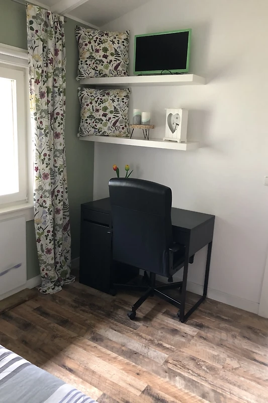 Zudem ist ein Schreibtisch vorhanden. Für Kinder steht ein Reisebett und ein Hochstuhl bereit, sowie ein paar Haus-und Gartenspiele.
