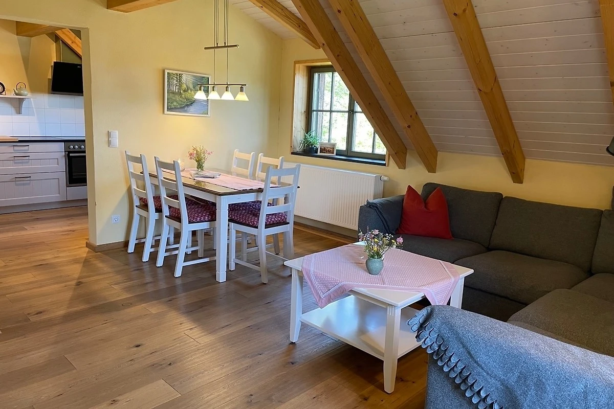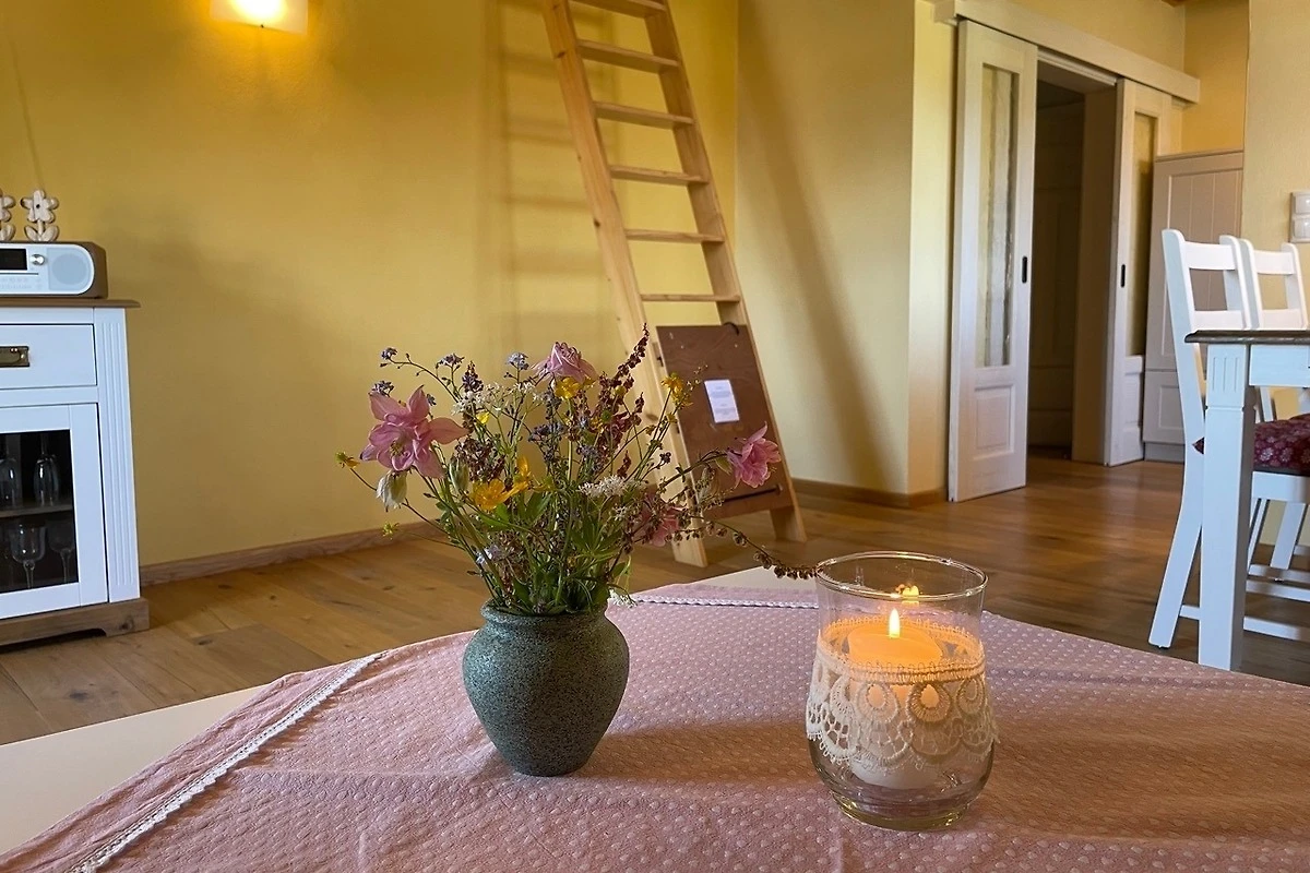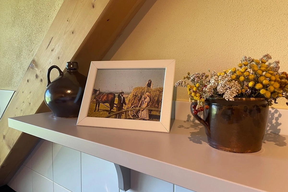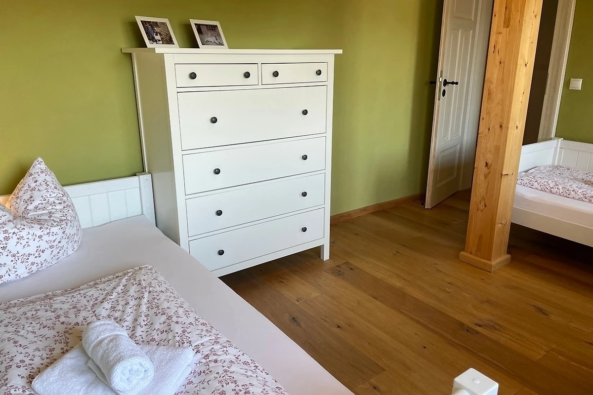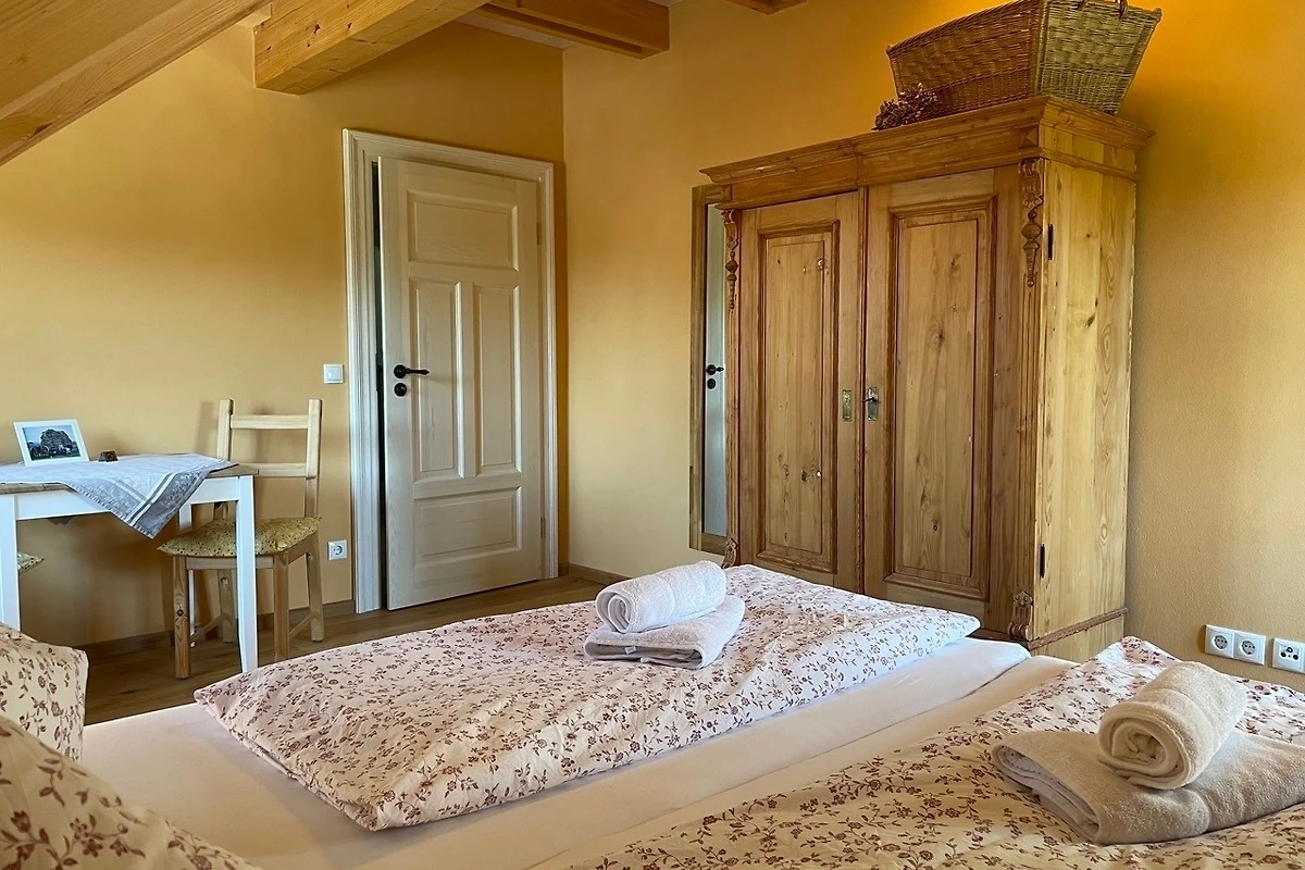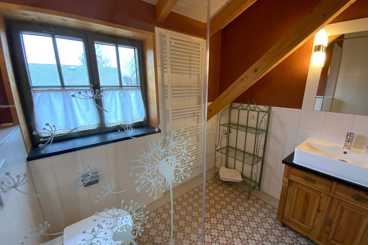 Die Kutscherstuben befinden sich im Dachgeschoss und bieten Platz für 4 Personen. Hier steht Ihnen eine Küche mit offenem Übergang zum Wohnbereich zur Verfügung. Die Küche ist mit Herd, Geschirrspüler, Kühlschrank, Kaffeemaschine, Wasserkocher, Toaster und vielem mehr voll ausgestattet. Desweiteren gehören zur Wohnung ein Schlafzimmer mit Doppelbett, ein Kinderzimmer mit zwei Einzelbetten, ein Spielboden sowie ein Bad mit WC und Dusche. Durch die ökologische Bauweise mit Holz, Lehm und Naturdämmstoffen herrscht hier zu jeder Jahreszeit ein sehr angenehmes Wohnklima. Dort wo unsere Vorfahren Zimmer für die Kutscher planten, entspannen Sie heute mit Ausblick ins Oberlausitzer Bergland.