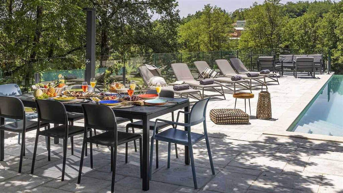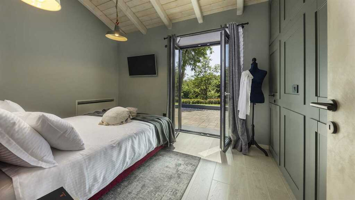 Villa Barbarella, im historischen Dorf Muntrilj in der Nähe von Višnjan gelegen, ist ein perfektes Beispiel dafür, wie autochthones Design mit modernen Einrichtungen verschmilzt.