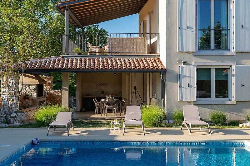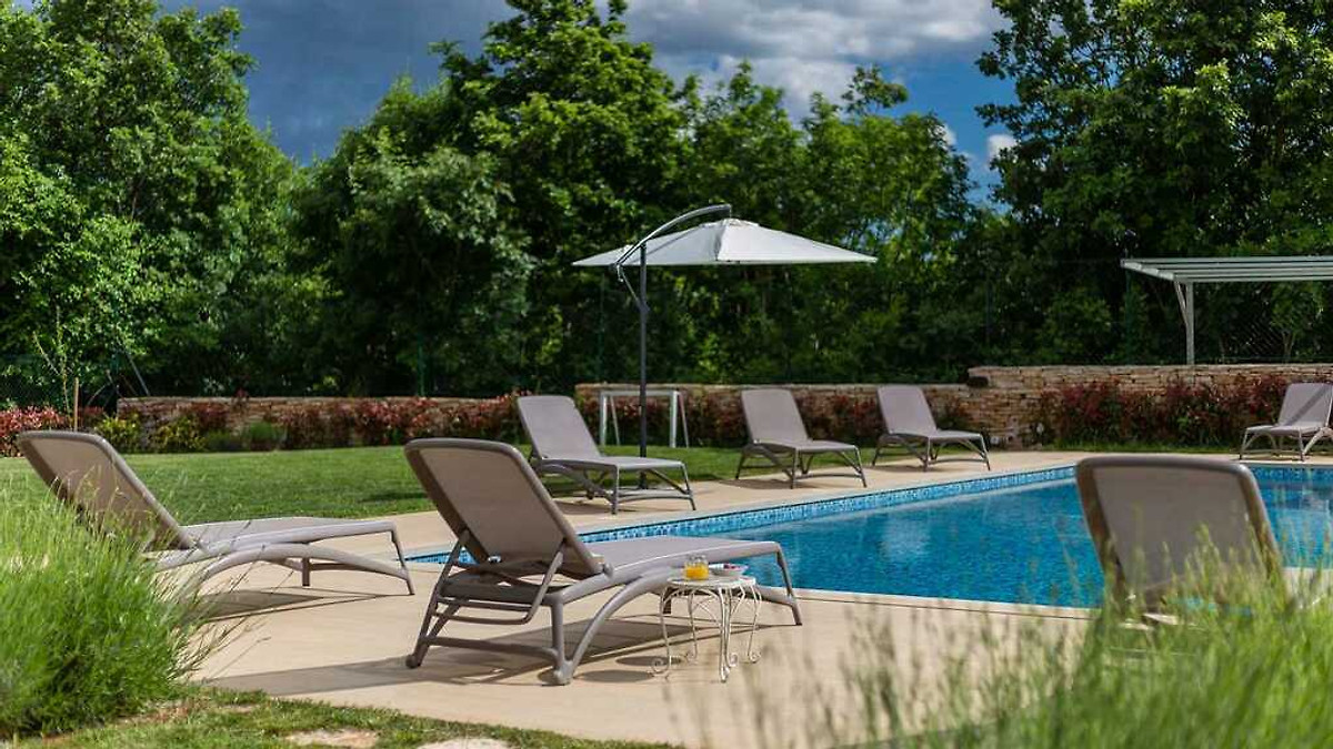 Luxuriöses Leben in Istrien: Weinterrasse, Pool und gehobener Einrichtung, für 6 + 2 Personen; eingezäunter Garten, ruhig