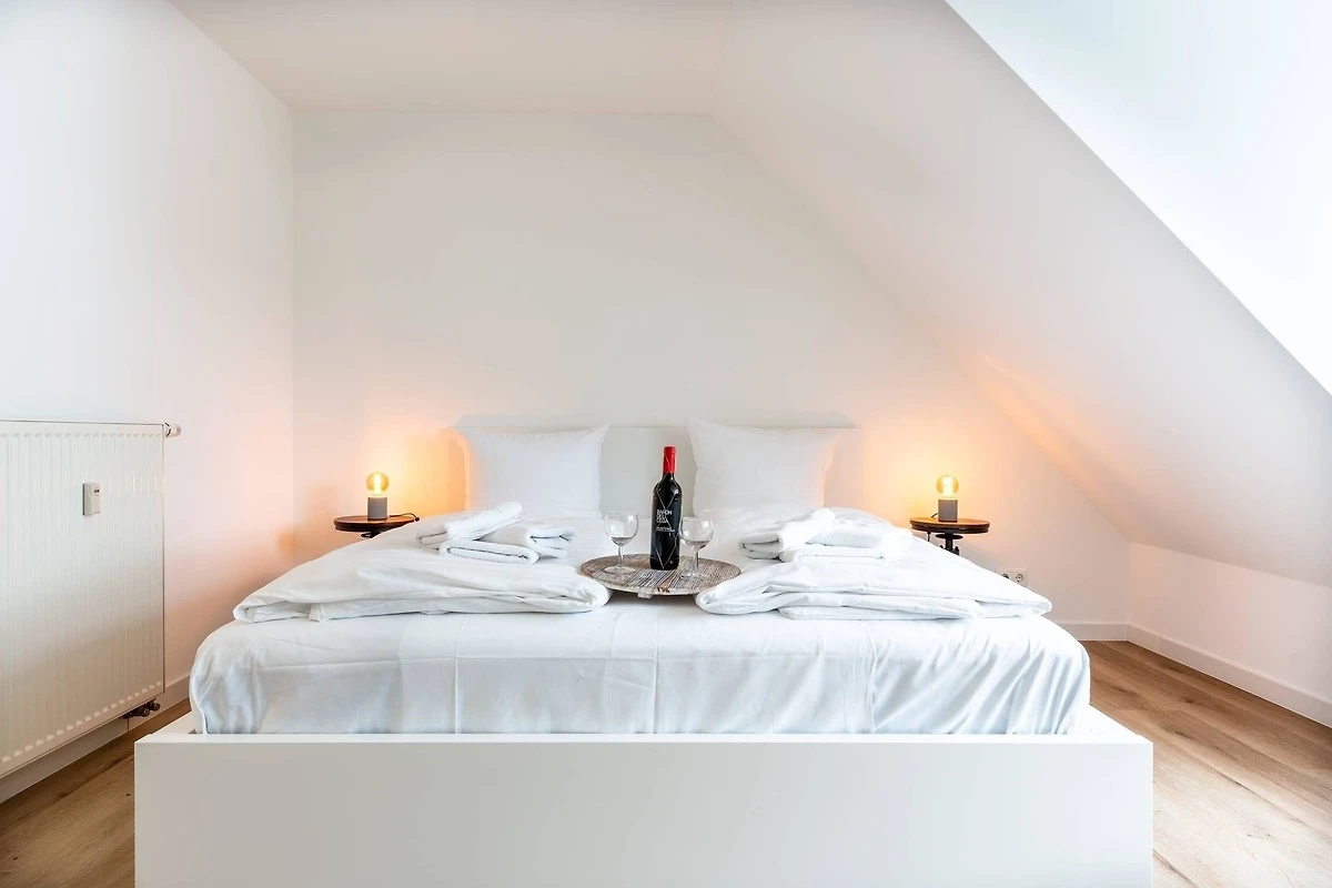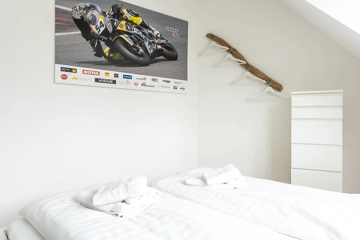 Das grössere von beiden Schlafzimmern ist mit einem Doppelbett (180 x 200) und TV ausgestattet. Im kleineren Schlafzimmer befindet sich ein Doppelbett von 160 x 200 für 2 Personen.