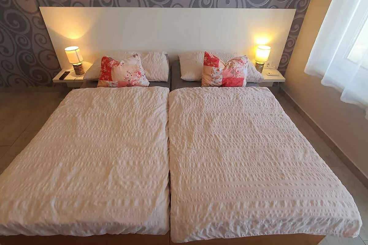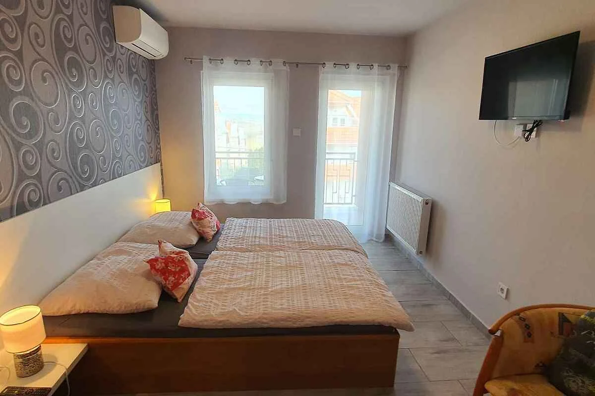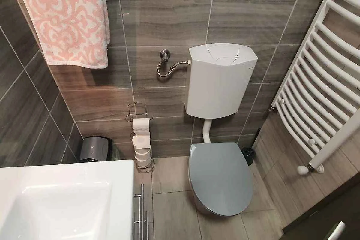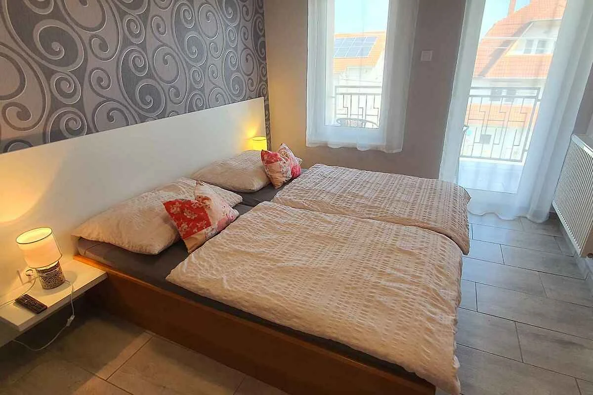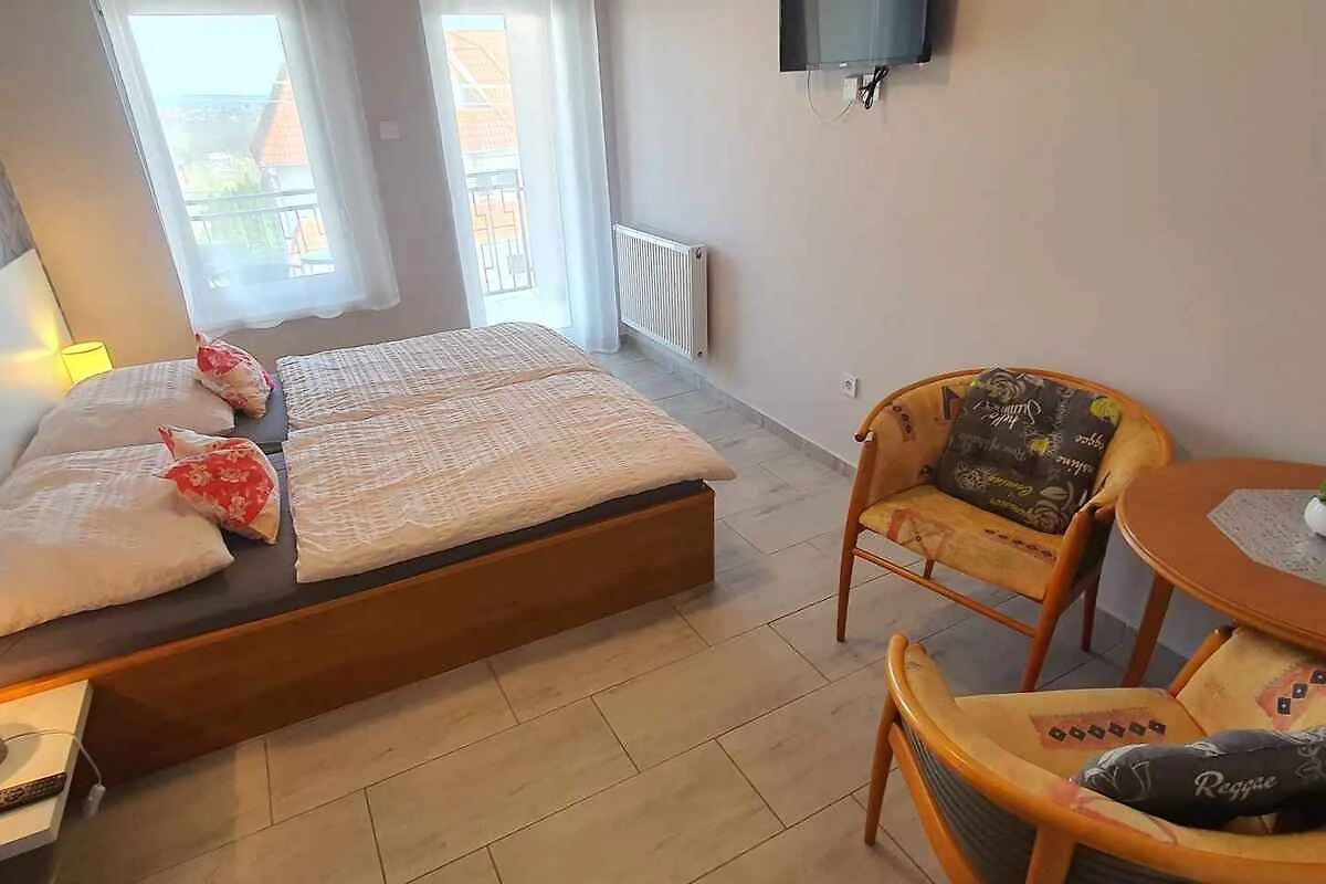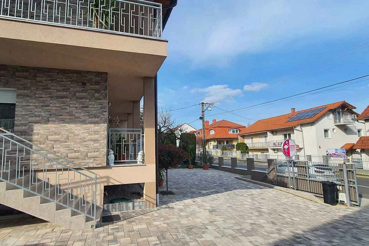 Hévíz. Das Studio befindet sich auf einem 600 qm grossen, geschlossenen Gartengrundstück mit Blumen, Sträuchern und Bäumen, von einem Zaun begrenzt. Der Vermieter wohnt nur zeitweise im Haus, nutzt jedoch einen separaten Eingang. Die Zufahrt erfolgt über eine Nebenstrasse (asphaltiert). Parkplatz (für 1 Pkw) auf dem Grundstück.
