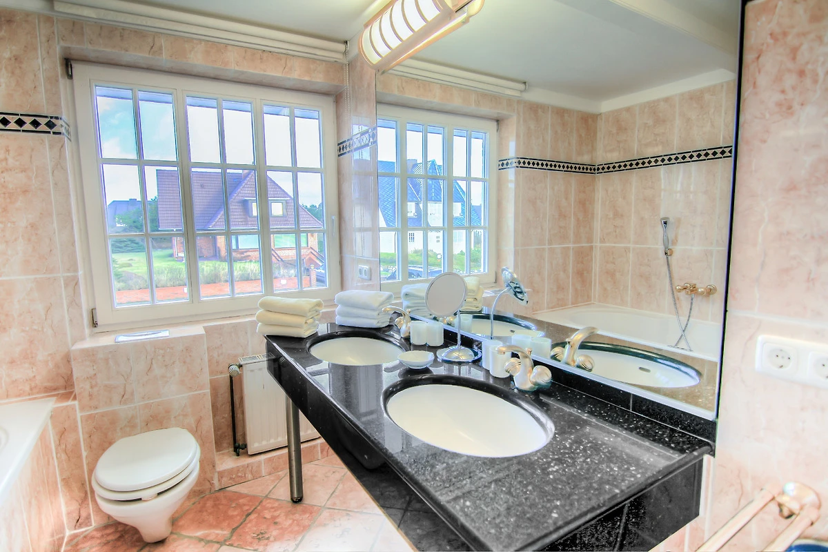Die Sylter Sonnenstunden geniessen Sie auf dem Süd-Westbalkon. Das erste der drei Schlafzimmer, sowie ein Bad mit Whirlpool befinden sich auf dieser Ebene.