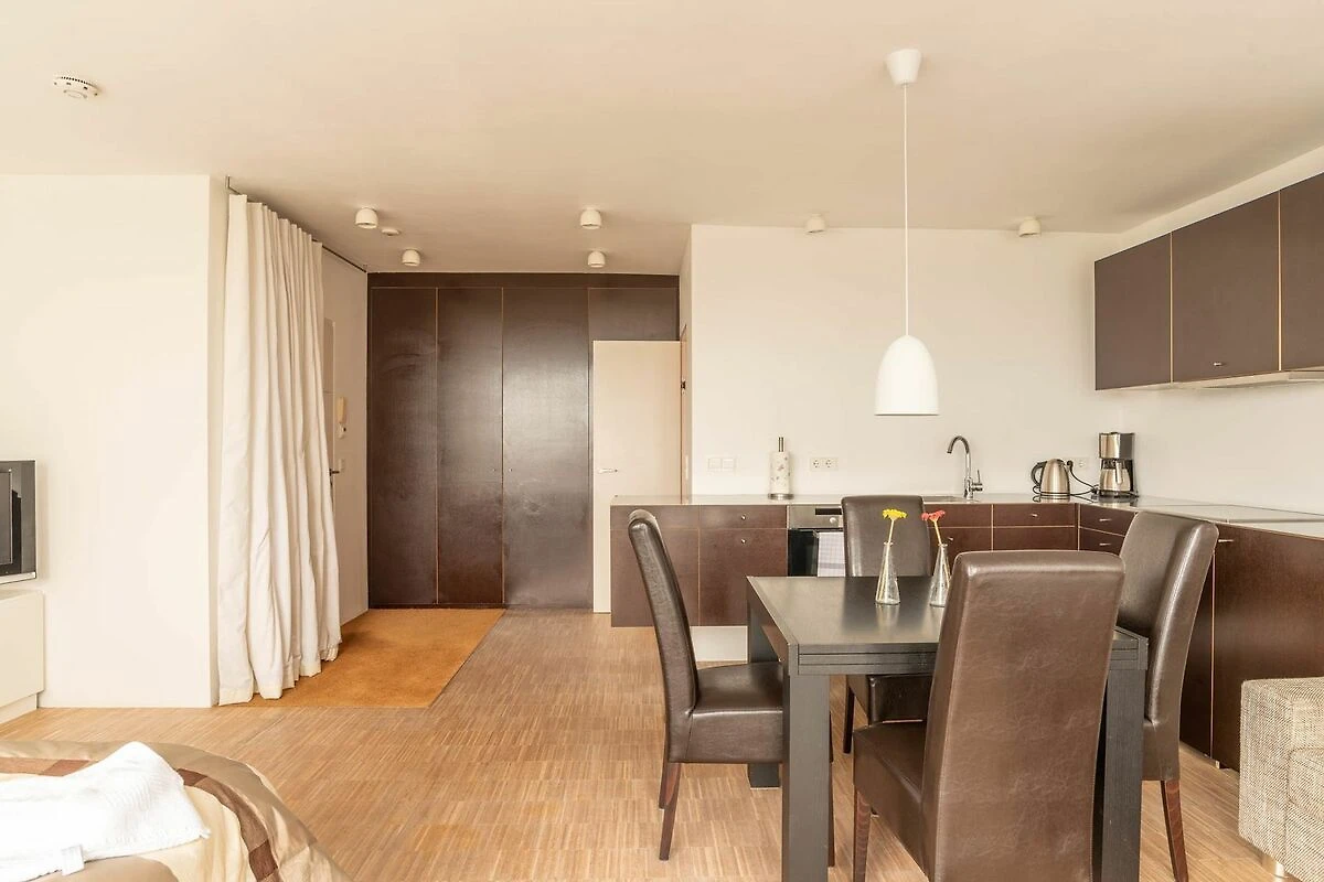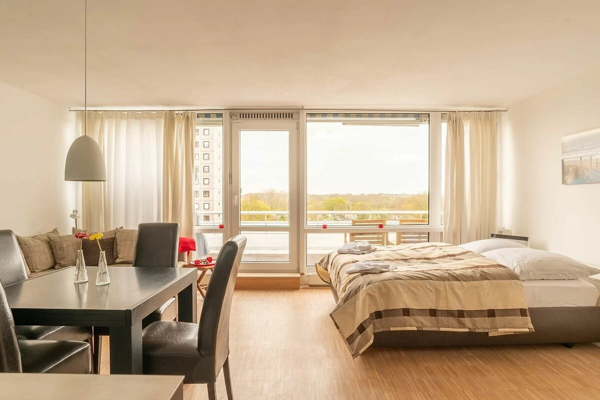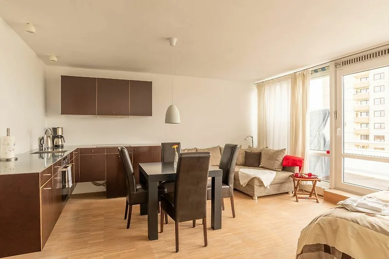 Sonne pur. Die bodentiefe Fensterfront lässt die 1 Zimmer-Wohnung hell erstrahlen. Sie bietet Platz für bis zu 3 Personen.