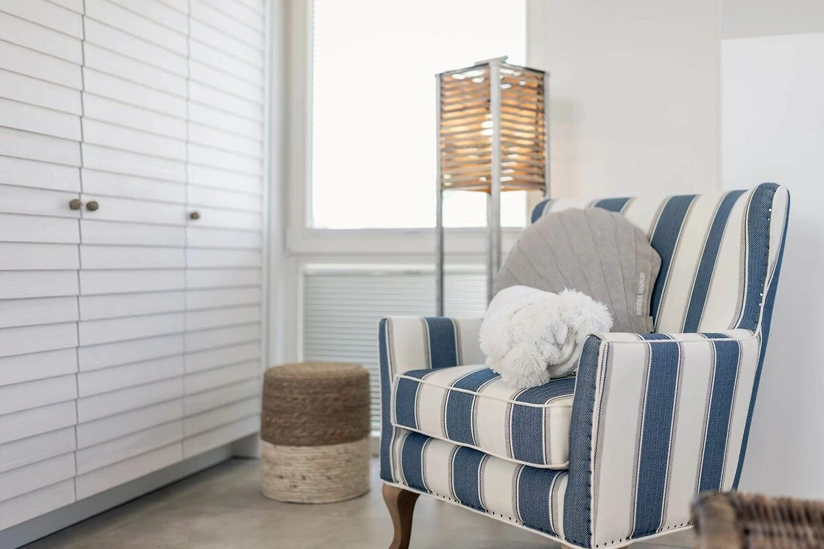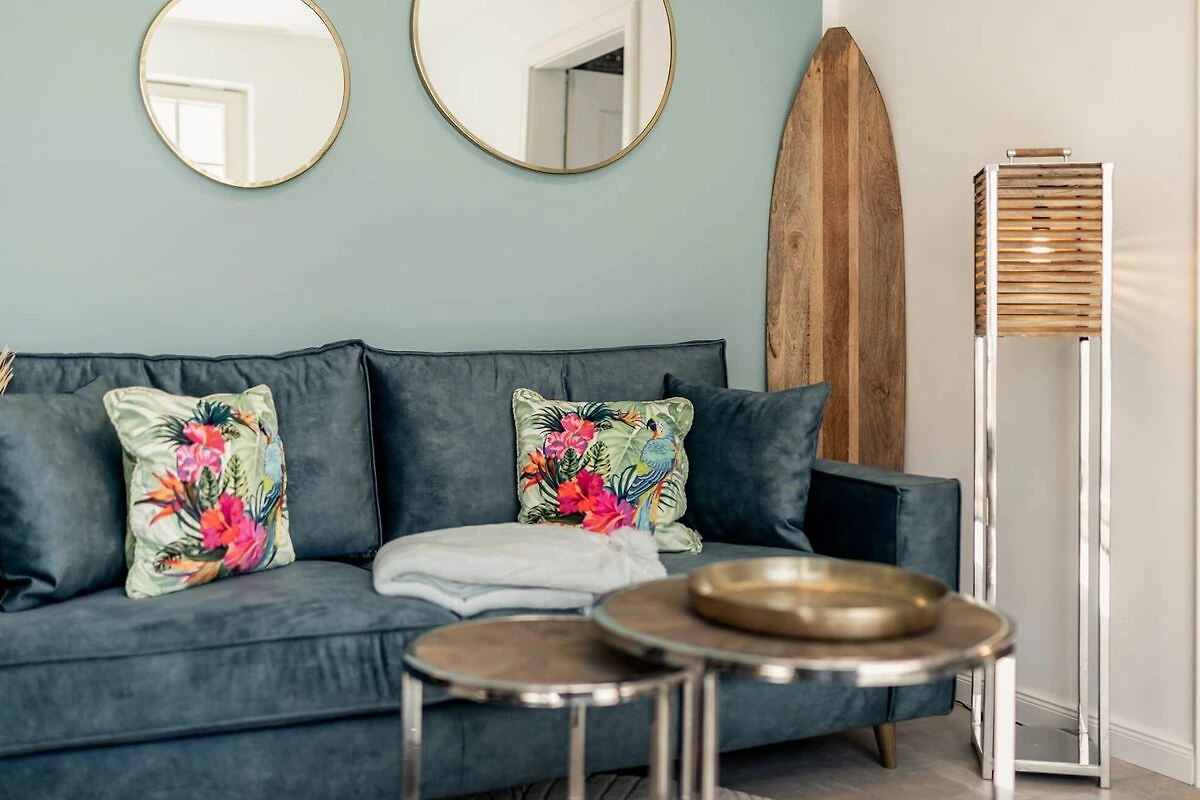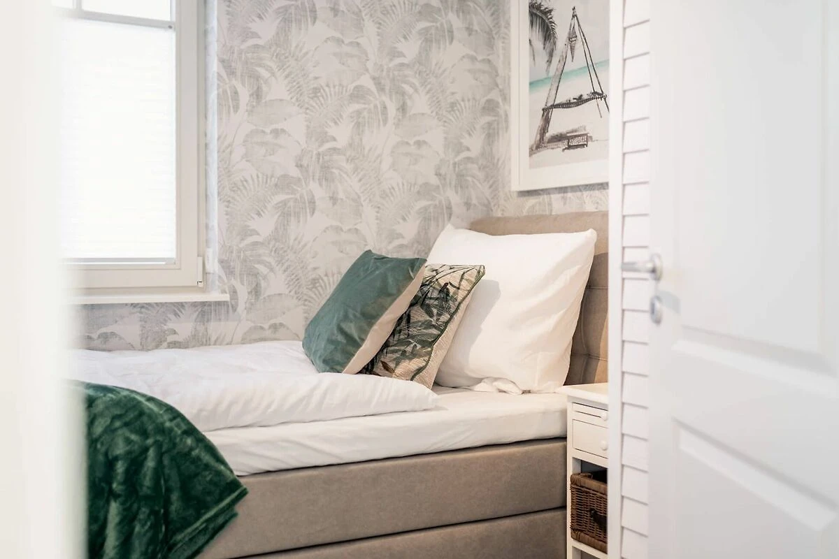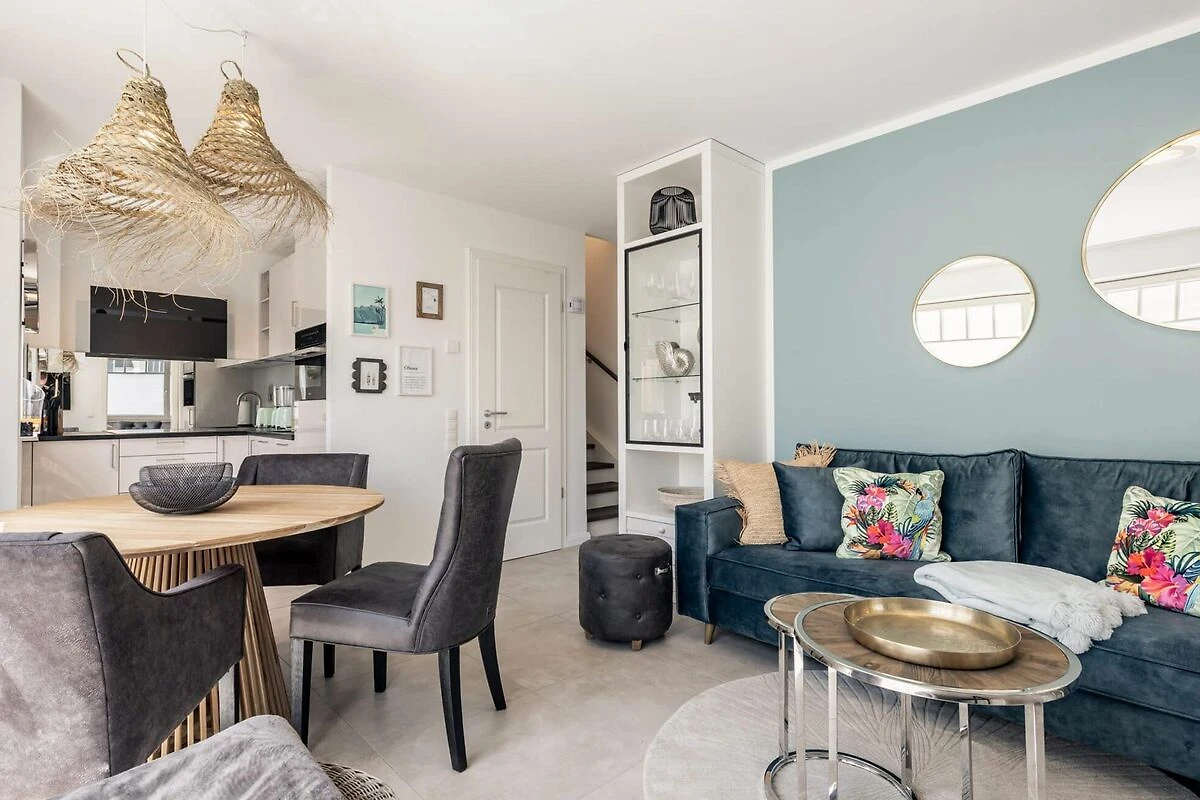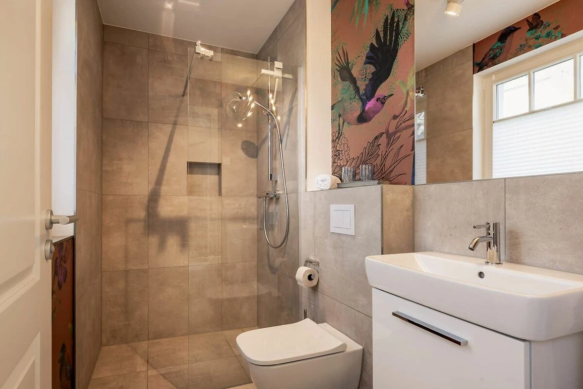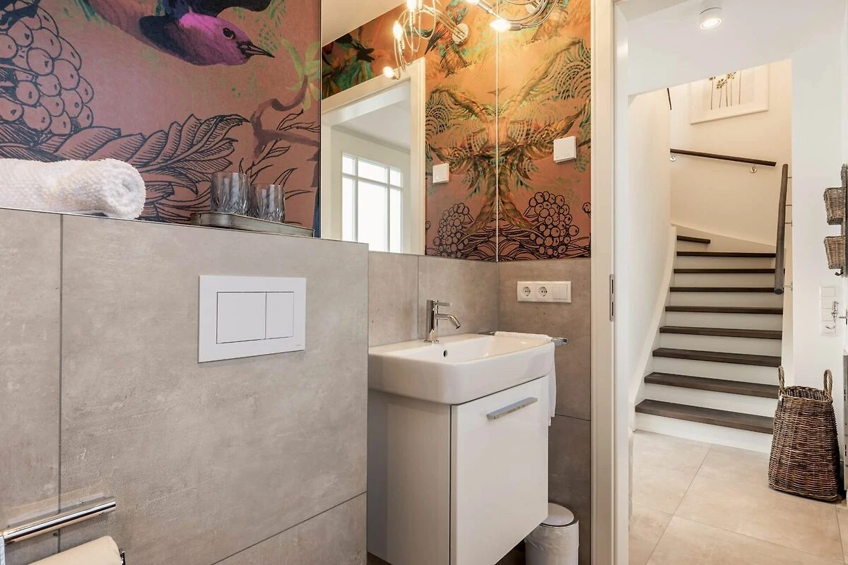 Das Erdgeschoss erfreut mit offener, hochwertig ausgestatteter Küche und lichtdurchflutetem Essbereich. Der Wohnbereich ist gemütlich mit stilvollem Interieur ausgestattet. Ein Schlafzimmer mit zwei Einzelbetten und einem Bad mit ebenerdiger , offener Dusche bietet Ihnen zusätzlichen Komfort. Alle Schlafzimmer sind mit Boxspringbetten ausgestattet und verfügen über Schreibecke und Smart-TV´s.