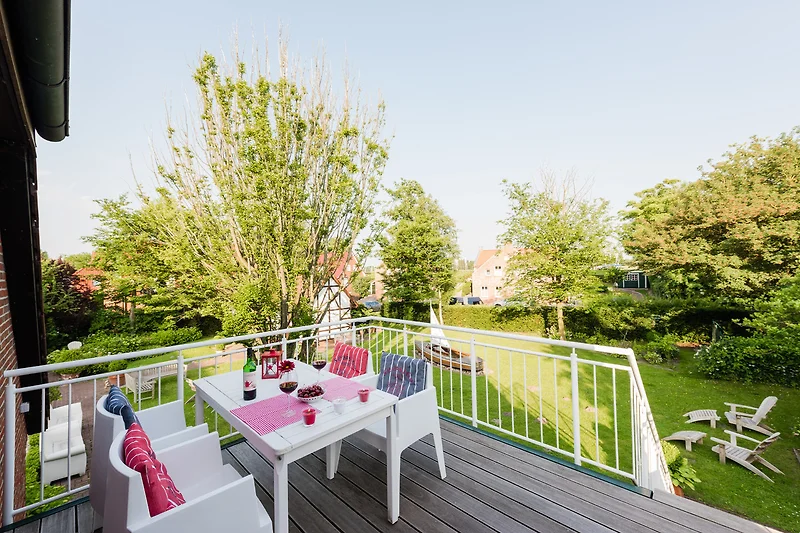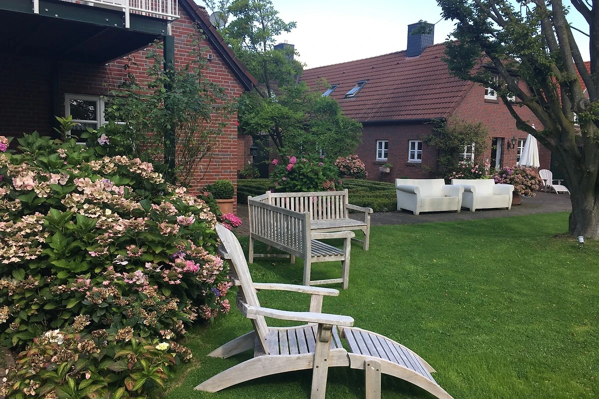 Darüber hinaus steht Gästen der riesige Landhaus-Garten (2000 qm) zur Verfügung: mit Sonnenliegen und Sonnenschirmen - aber auch Schattenplätzen, wenn die Sonne mal zu heiss scheint.