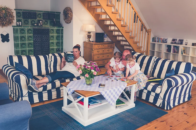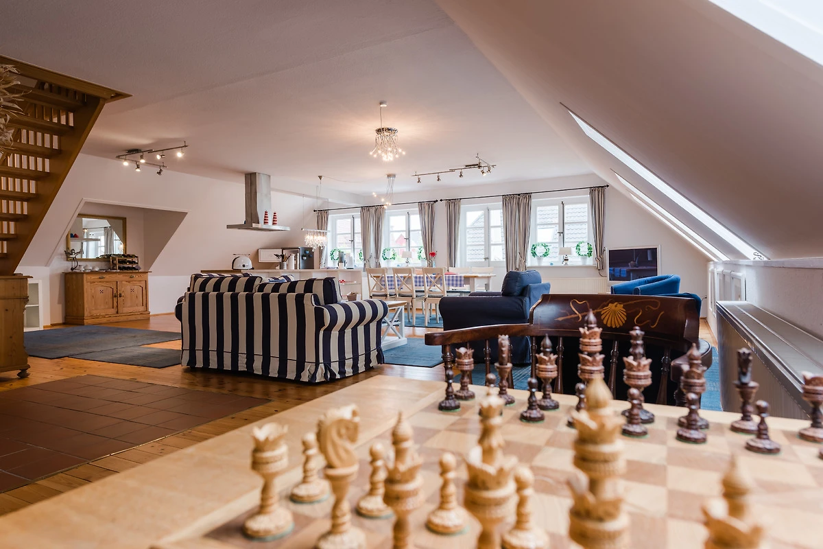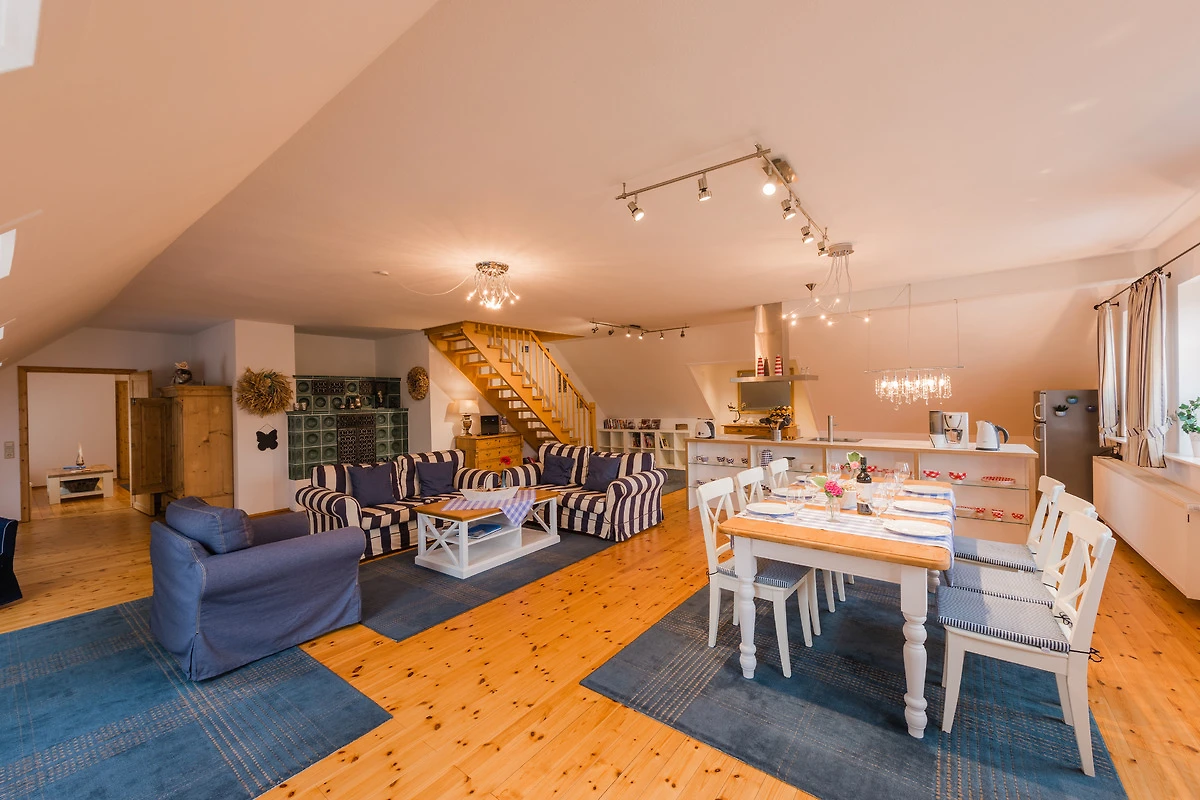 Die Komplettpreise verstehen sich bei einer Belegung mit zwei Personen in der unteren Etage (ca. 120 qm)., die Diele, Bad, Schlafzimmer und grossen Wohnbereich umfasst.