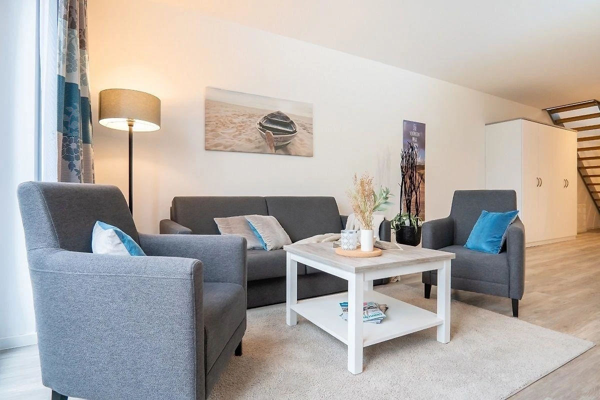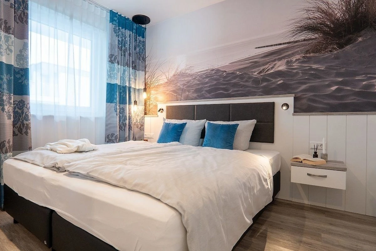 Willkommen in der Meerblickvilla - näher ans Meer geht es kaum. Die stylische Penthauswohnung befindet sich in der dritten Etage und erstreckt sich über zwei Ebenen. Sie verfügt über drei Zimmer auf ca. 104 m² - aufgeteilt auf zwei Schlafzimmer mit jeweils einem Boxspringbett (Masse ca. 2*90*200 cm), zwei Bäder und den lichtdurchfluteten Wohn- und Essbereich mit angrenzender Küchenzeile. Die gesamte Wohnung ist mit einer Fussbodenheizung und sonnenschutzverglasten, teils bodentiefen Fenstern ausgestattet. Die Gemeinschaftssauna im im Haus kann kostenfrei genutzt werden.