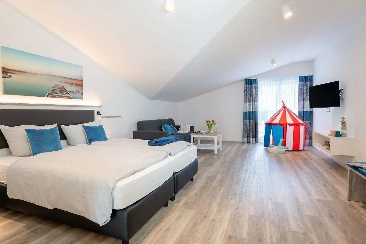 Sie träumen von sanft abfallenden Stränden, glühenden Sonnenuntergängen und Erholung für die ganze Familie - dann kommen Sie nach Grossenbrode am Fehmarnsund. Am breiten, feinen Ostseestrand lässt es sich herrlich buddeln und Strandburgen bauen. Kleine Wasserraten und Badenixen können sich in der flachen Ostsee nach Herzenslust austoben. In naher Umgebung finden Sie Einkaufsmöglichkeiten, Spielplätze sowie Restaurants und diverse Freizeitaktivitäten. Grossenbrode verfügt über einen eigenen Bahnhof. Die Insel Fehmarn ist nur ca. 4 km von Grossenbrode entfernt und auch die Warderstadt Heiligenhafen (ca. 10 km entfernt) lädt Sie auf einen Besuch ein. Hier finden Sie neben dem traditionellen Fischereihafen auch einen der grössten und modernsten Yachthäfen Deutschlands, eine über 500 Meter lange Seebrücke und einen kilometerlangen Badestrand.