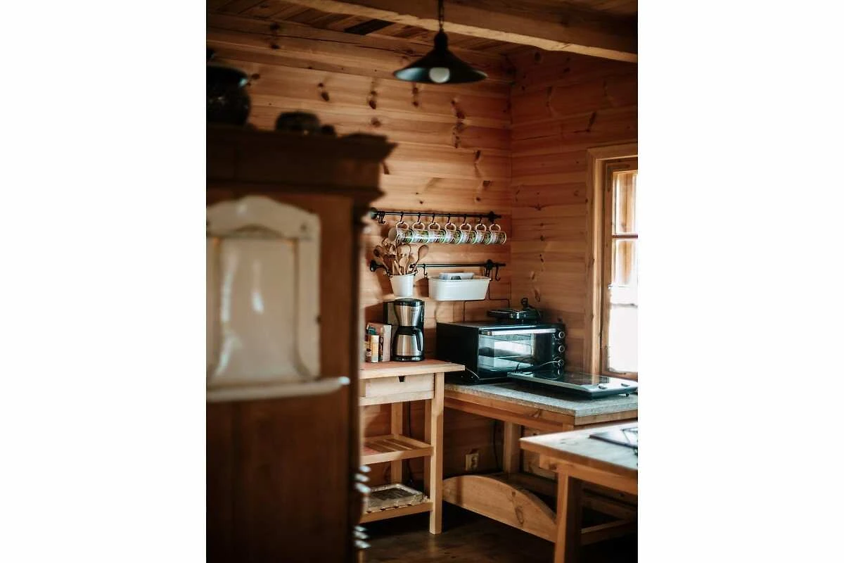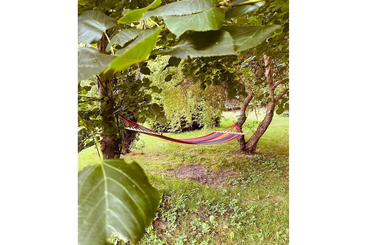 Ein stimmungsvolles, zweistöckiges Ferienhaus, umgeben von einem großen, privaten Garten (der Bereich wird mit dem Gastgeber geteilt, der im Nachbarhaus wohnt). Das gesamte Erdgeschoss besteht aus einem gemeinsamen Wohnzimmer, das mit der Küche verbunden ist. Es gibt einen großen Tisch, ein 2-Sitzer-Sofa, einen Fernseher und einen Holzofen (im Preis des Aufenthalts ist ein Starter-Set mit Brennstoff enthalten). Im ersten Stock befinden sich 3 separate Schlafzimmer, ein Badezimmer mit Dusche und ein separates WC. Das Haus verfügt über eine hervorragende Wärmedämmung und verfügt über zwei Heizquellen: Elektro- und Holzofen, so dass zu jeder Jahreszeit angenehme Entspannung gewährleistet ist. Es gibt auch eine Klimaanlage. Das Haus verfügt über eine sehr große, überdachte Terrasse mit Gartenmöbeln und Liegestühlen. Grillmöglichkeiten sind vorhanden. Drahtloses Internet ist verfügbar, aber aufgrund seiner Geschwindigkeit können Sie nur grundlegende Informationen im Internet abrufen.