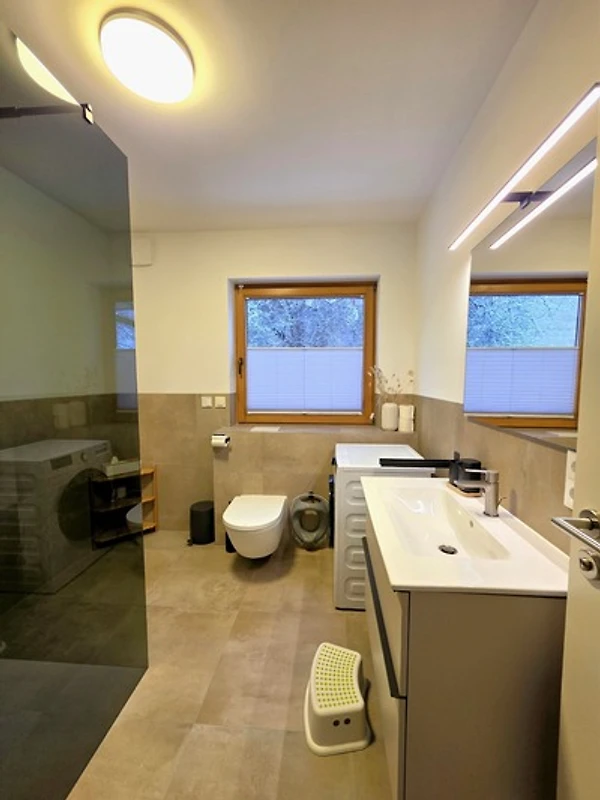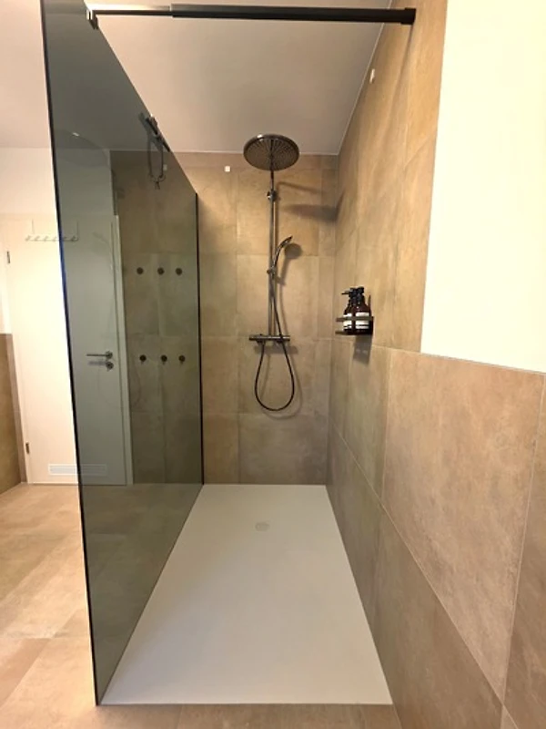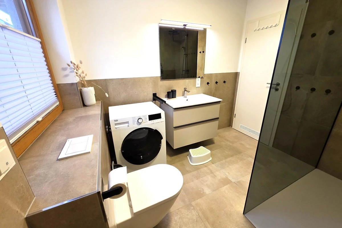 Das Badezimmer wurde modernisiert und mit einer Duschkabine aus Glas ausgestattet. Ausserdem steht eine Waschtrocknerkombination kostenlos zur Verfügung, sodass Sie nicht Unmengen an Kleidung mitnehmen müssen.