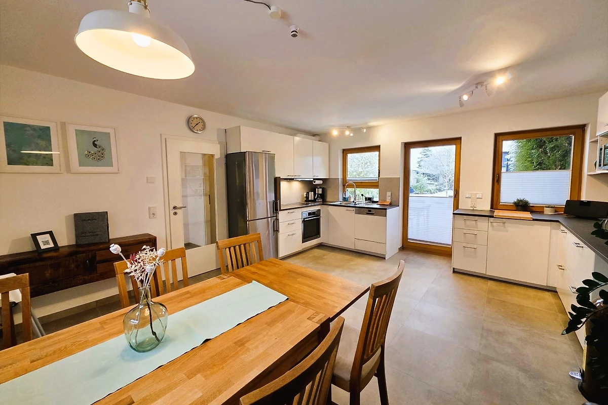 Das Haus ist sehr hochwertig und vollständig ausgestattet, damit Sie während Ihres Aufenthaltes nichts vermissen. So bietet die grosszügige Essküche unter anderem eine Kühl- und Gefrierkombination, eine Spülmaschine, Kaffeemaschine (Filter + Nespresso/Kapsel), Mikrowelle, Eierkocher, Toaster, Induktionsherd, Backofen mit Kerntemperaturüberwachung und natürlich ausreichend Besteck und Geschirr für alle Gäste. Für Kinder gibt es einen Hochstuhl und Kinderbesteck. Darüber hinaus bietet die Küche alles um sich wie zu Hause selbst zu verpflegen. Alle Küchenutensilien werden regelmässig geprüft und erneuert.