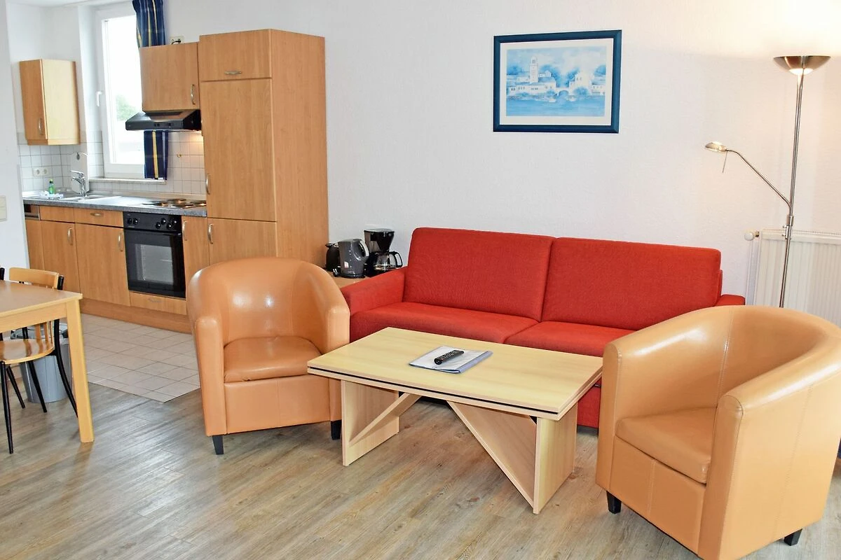Mit Wohnraum, Küchenzeile, 1 bis 2 Schlafräumen und Bad mit WC sind die Ferienwohnungen für 4 bzw. 6 Erwachsene und ein Kind im Kinderreisebett bis 3 Jahre modern und komfortabel eingerichtet. Ein kleines Kinderreisebett sowie ein Hochstuhl können auf Wunsch kostenpflichtig zugebucht werden.