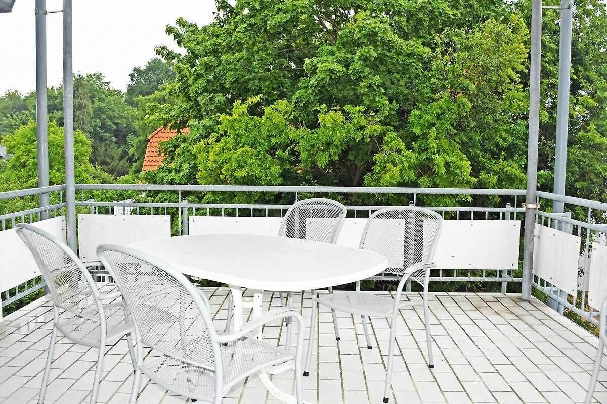 Der schöne Balkon mit Gartenmöbeln lädt zu gemütlichen Stunden ein. Hier können Sie die Abende bei einem Glas Wein ausklingen lassen und jederzeit die gute Ostseeluft und Sonne auf Rügen geniessen.